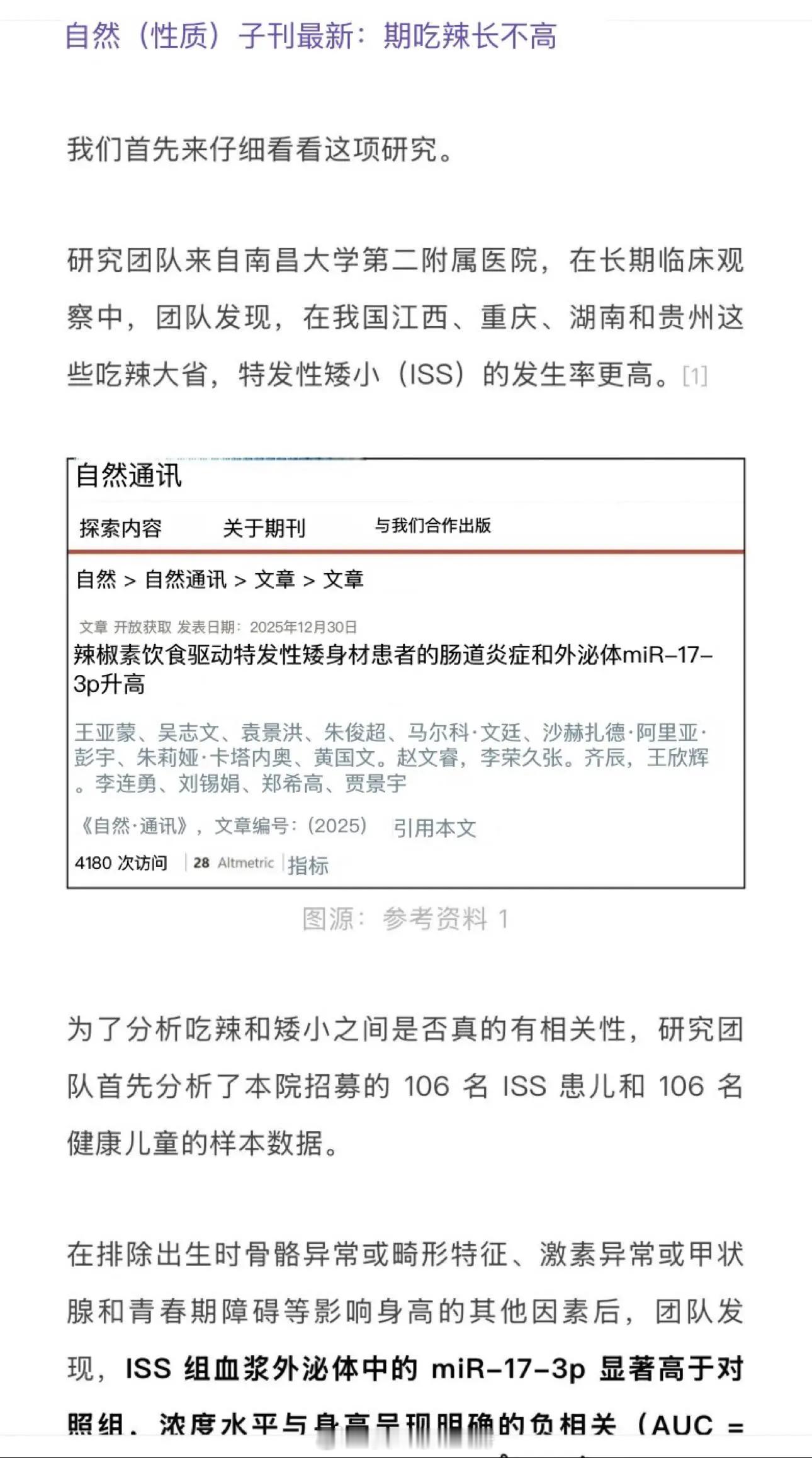 自然子刊:长期吃辣长不高。从抽样方法来看,这篇文章是认真的嘛。。。。难怪《Nature Communications》的争议一直很大。。。。。