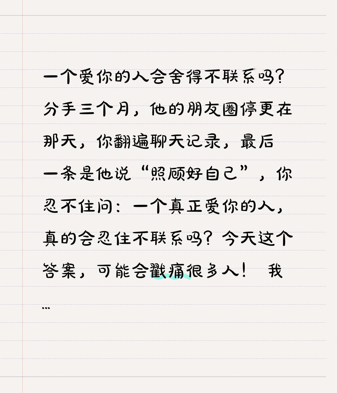 一个爱你的人会舍得不联系吗? 分手三个月,他的朋友圈停更在那天,你翻遍聊天记录,