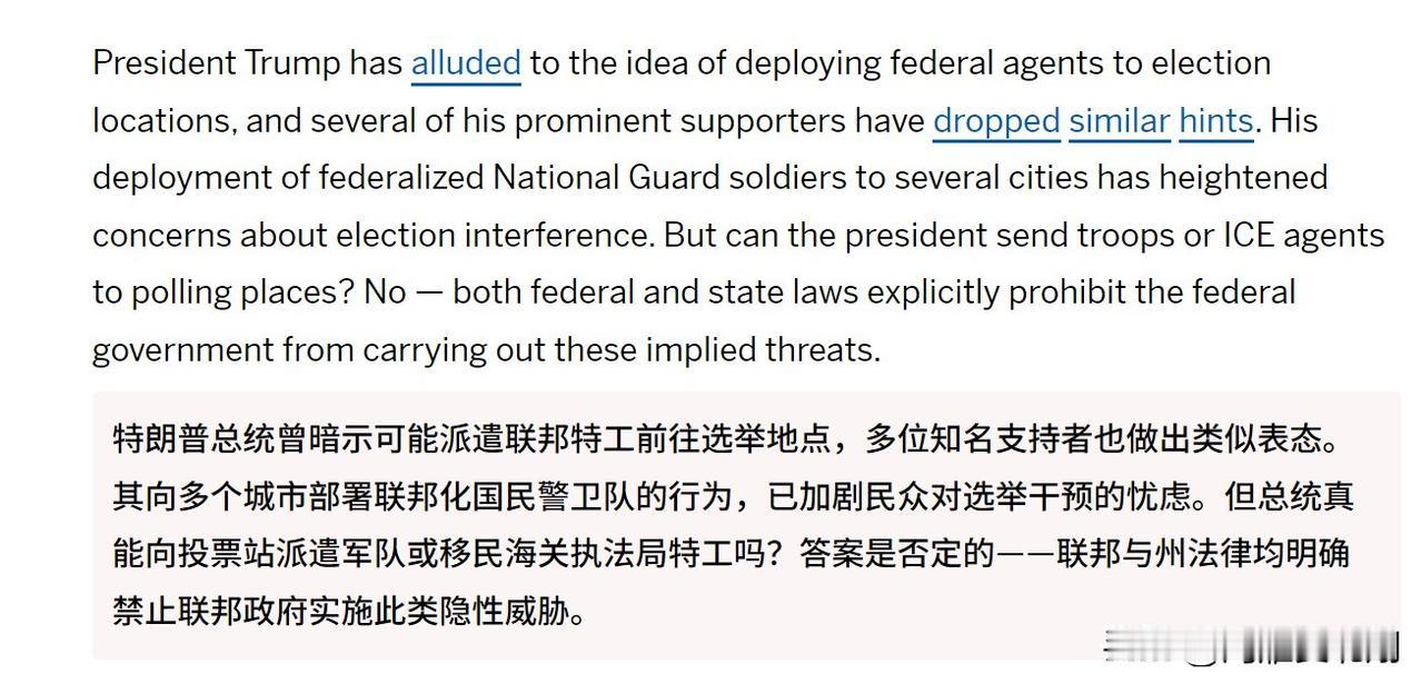 特朗普考虑中期选举的时候把ice部署在投票站附近。 我之前就说了,ice这么搞下去,变成冲锋队指日可待,众所周知特朗普一旦输了大选,那肯定会被抓进监狱,上次下台就众叛亲离,有了上次的经验,这次肯定学到了,直接不下台就完事了。 至于怎么不下台?ice往选举票箱一站,按个查身份,反正美国公民打死了都没事,再打死几个民主党支持者也掀不起什么波浪,这要是选举还能输,那就有鬼了!