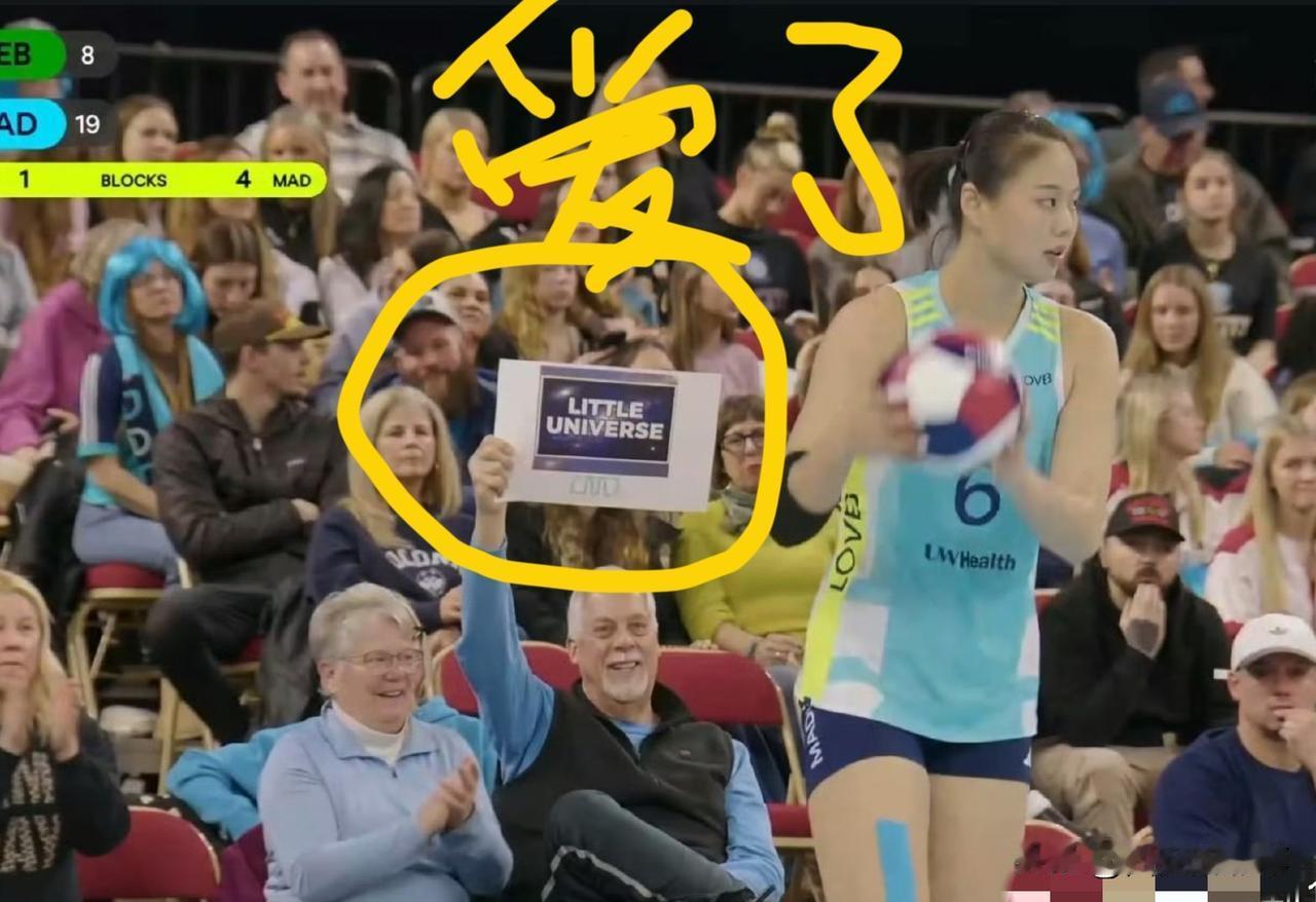 龚翔宇,老少通吃,是真的香 瞧,花白老爷爷举牌“ little universe”,表达对她的喜欢。的确,她作为麦迪逊的大牌球星,不仅形象好、气质佳,得分能力更是没得说。 这不,第二场,且不说进攻,她的发球和拦网简直slay,全面性,无人能敌。这样形象甜美,得分能力强的小宇宙,谁能不喜欢啊[呲牙]龚翔宇
