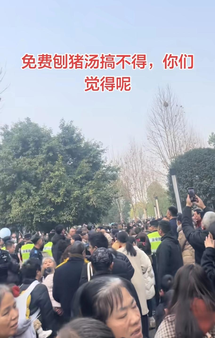 又是一起城里搞杀猪宴搞不得,前有乐山,后面又来一个。 杀猪宴是存在于四川广大农村乡坝头过年前的习俗,农民们见怪不怪,喊你去帮忙吃个饭,没所谓,但没帮忙的,人家喊你就会条件反射的拒绝。 而城市里就不一样,哪里超市打折,然后哪里抢鸡蛋,甚至于每到踏春时去偷菜,还美其名曰以为别人不要,现在城里跑出来一个不要钱的刨猪饭,那不乱才怪。