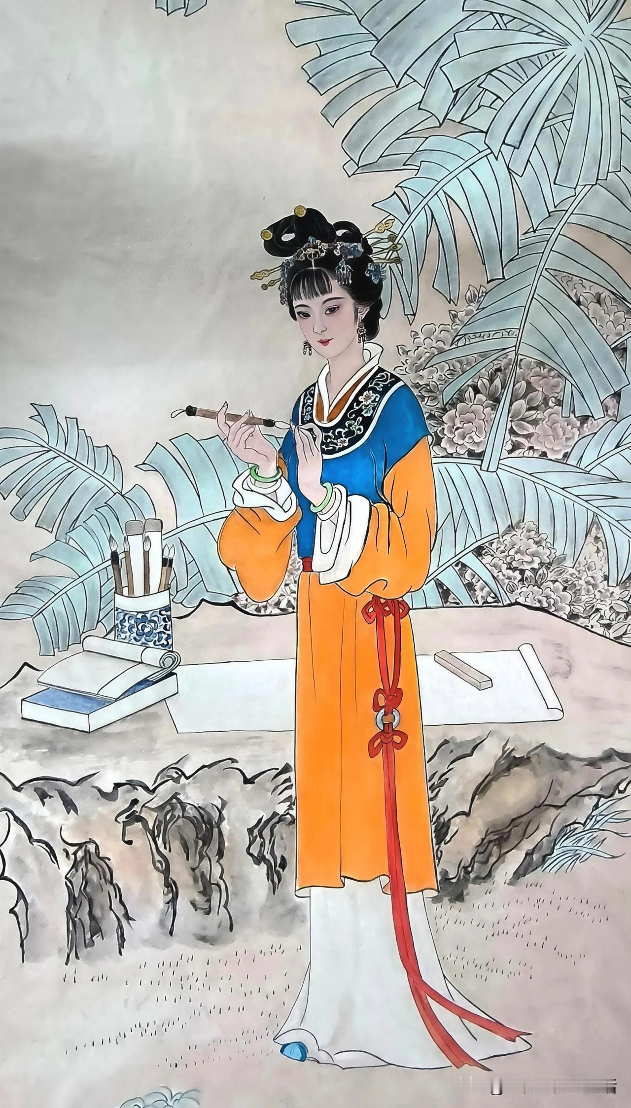 花间美人,玉簪轻垂。