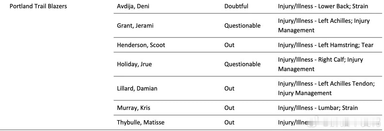 彻底危机!湖人开拓者比赛预告!糟糕消息接踵而至!湖人没希望!湖人开拓者比赛预告!湖人彻底危机!两连败板上钉钉!附加赛要来了!ESPN预测湖人胜率54.7%!而开拓者45.3%!双方此前两战各自赢了一场!湖人在昨天惨败给黄蜂18分!在首节还拿了39分,没想到在第二节断电只拿了16分!而昨天双核发挥都不错,就是替补真的太差了!昨天替补就拿了9分!这就是湖人本赛季的一个缩影啊!防守本来就是短板,如果进攻也打不进,那湖人还拿什么赢球?开拓者这边上一场大胜老鹰16分!夏普最近状态火热!已经连续4场20+了,而朱哥昨天也复出拿下12分,但是少了阿夫迪亚,开拓者感觉不怎么会打球了,他目前已经缺席2场比赛,可以说是阿夫迪亚造就了这支开拓者,没什么意见吧!双方近5战及总战绩湖人近5战1胜4负,24胜15负西部第五开拓者近5战3胜2负,20胜22负西部第九双方预测首发湖人—老詹,拉拉,艾顿,八村,刚哥开拓者—朱哥,卡马拉,克林根,夏普,西索科双方伤病名单湖人—艾顿(左膝酸痛)、海斯(左腿筋)出战成疑!东契奇(左腹股沟酸痛)、里夫斯(左小腿拉伤)、蒂耶罗(右膝韧带扭伤) 缺席!开拓者—阿夫迪亚(背部拉伤)、格兰特(左跟腱)、霍勒迪(右小腿)出战成疑!杨瀚森(待命)!亨德森(腿筋撕裂)、利拉德(左跟腱)、默里(腰肌拉伤)、韦斯利(右脚骨折)、塞布尔(右膝伤势)缺席!双方球队数据:湖人进攻效率第8,防守效率第26,罚球率第1,投篮命中率第2开拓者进攻效率第23,防守效率第17,前场篮板率第3,罚球率第4,比赛节奏第8湖人洛杉矶湖人湖人国度詹姆斯开拓者