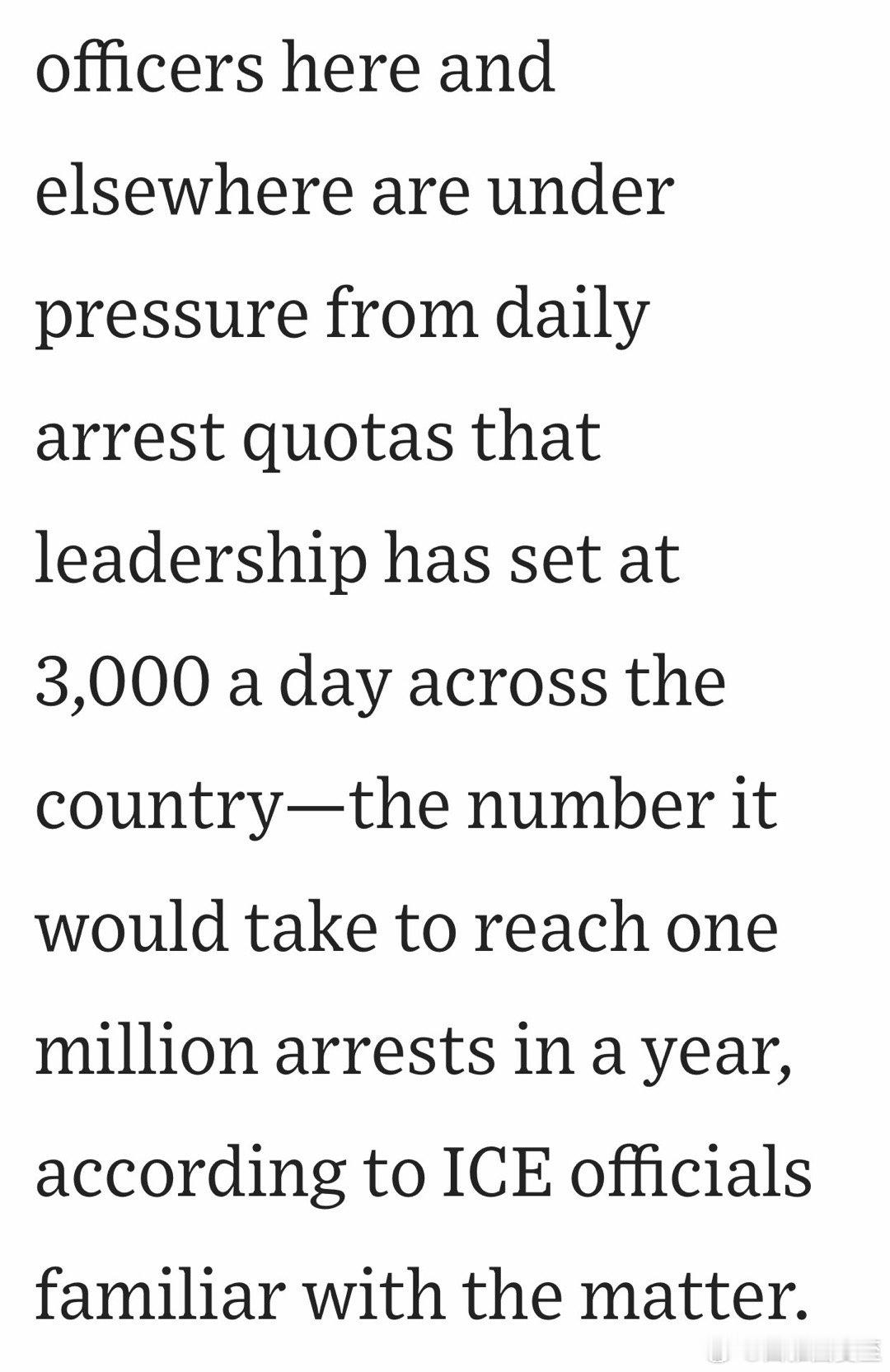 移民执法现在非常强硬,原因之一,是上层给了“配额”:今年要逮捕一百万(合每天近三千)完成这个目标,对各级领导很重要,所以具体执行的人,不怕抓错、只怕抓不够