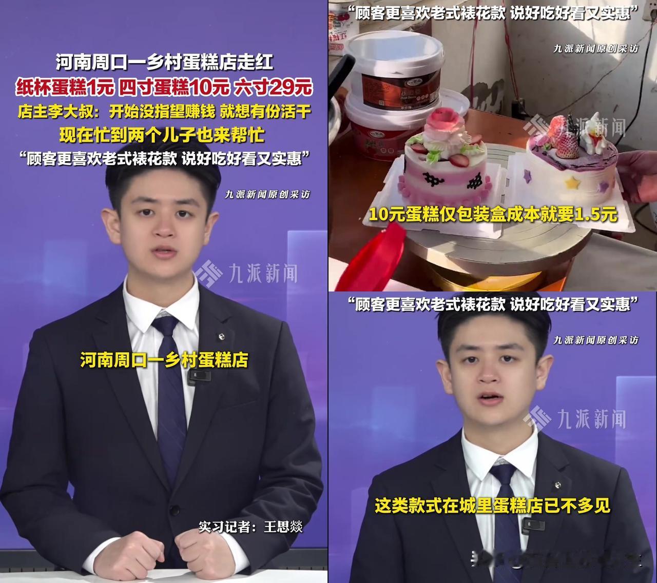 河南周口李大叔的6寸蛋糕卖29块,大家直接炸开了锅。 就是村口那种老式蛋糕房,纸杯1块、四寸10块、六寸29块,现在忙到俩儿子都来帮忙,还要限购。 你跟城里比啊,人家6寸动不动200+,这儿29,差了快10倍!有人说“肯定是植物奶油”,有人算帐说“批量买临期动物奶油也能覆盖”,还有人翻旧账,“20年前14寸才18块,现在涨得没边儿”。 关键是大家苦蛋糕刺客久矣!上次我买四寸花80,吃着跟泡沫似的,现在看这29的,哪怕吃窜了都得夸能通便!有人说“我265买的6寸算什么”,有人说“小时候一元纸杯终于回来了”,这哪是买蛋糕,是在捡被暴利吃掉的童年! 大家吵的不是29块,是合理俩字。城里蛋糕店把仪式感标成高价,把健康标成智商税,李大叔用低价告诉你:蛋糕本来就是能当零食的玩意儿,不是玻璃柜里的奢侈品。至于奶油是不是动物的?只要吃着踏实,比那些标着动物奶油卖200的强多了!