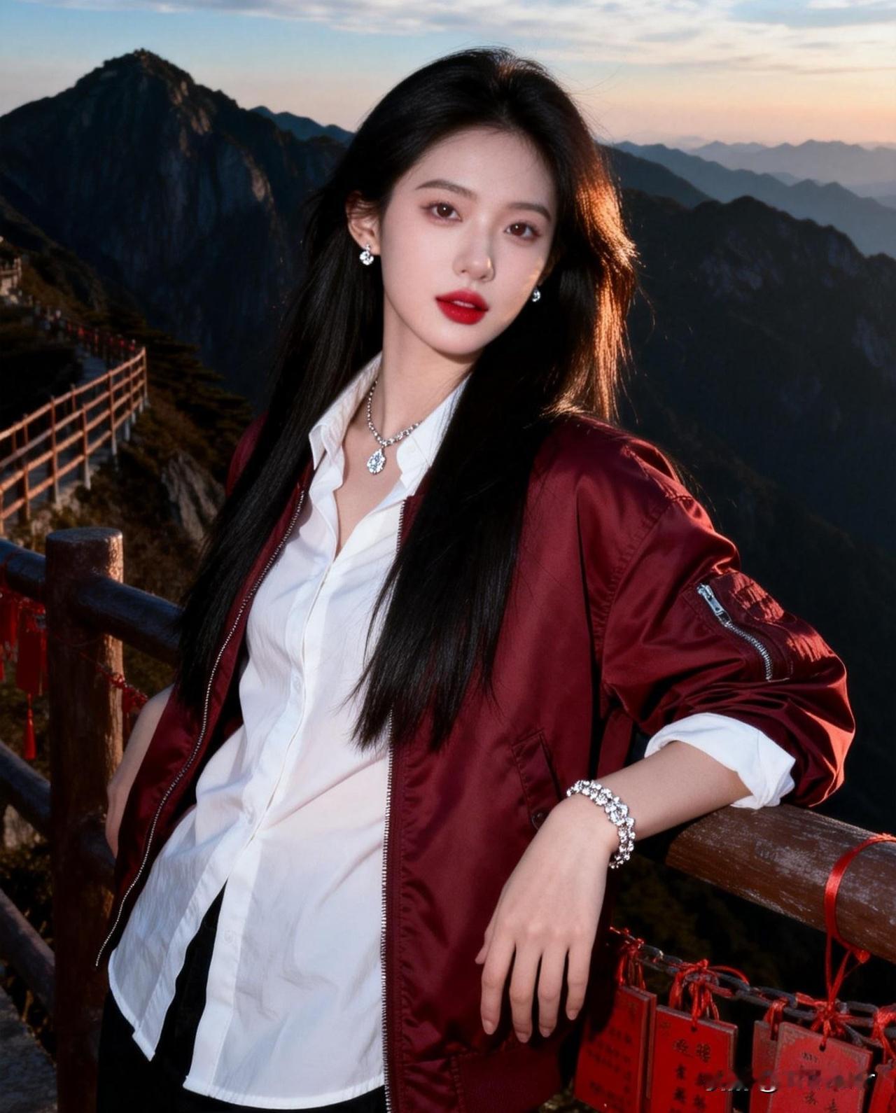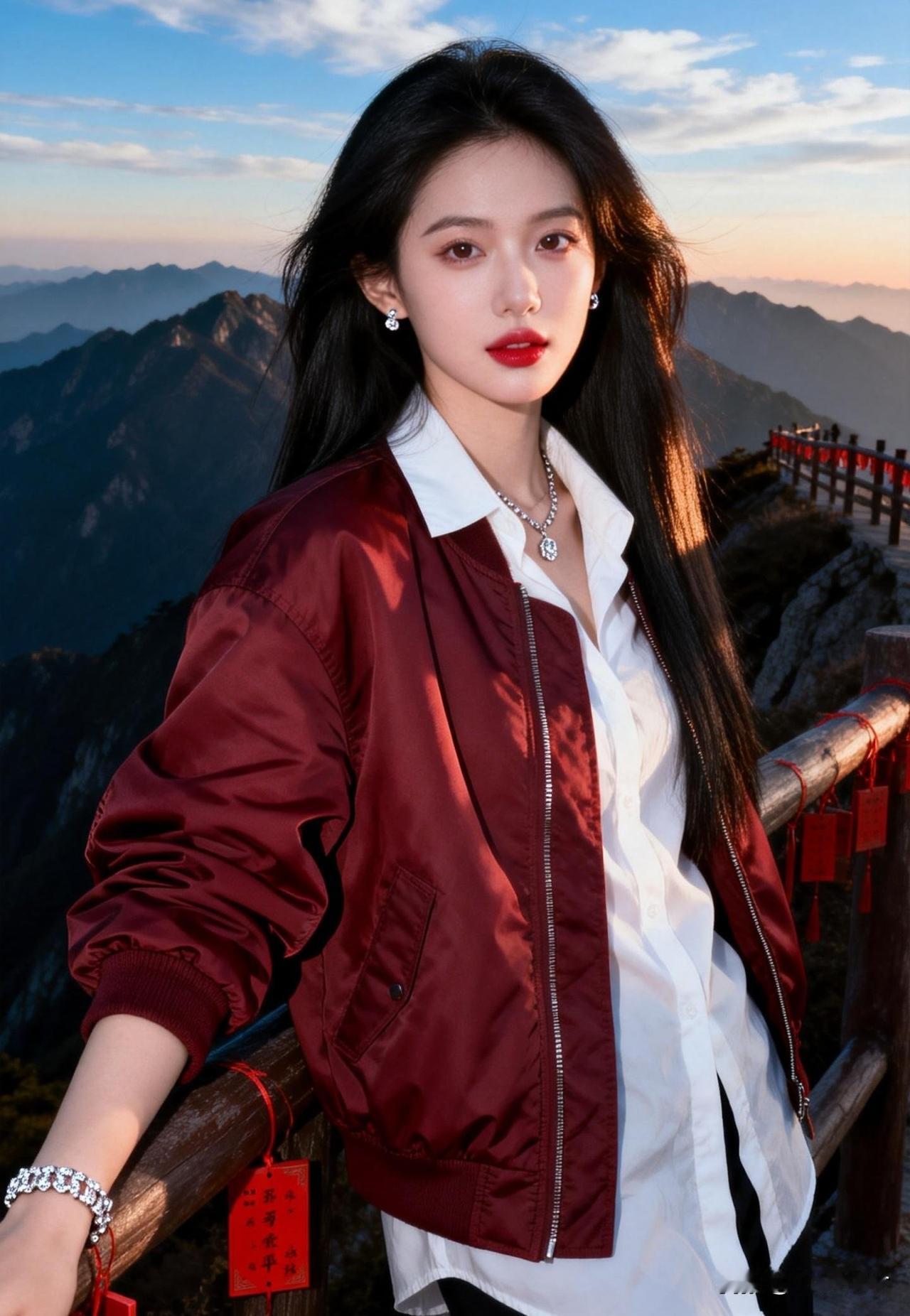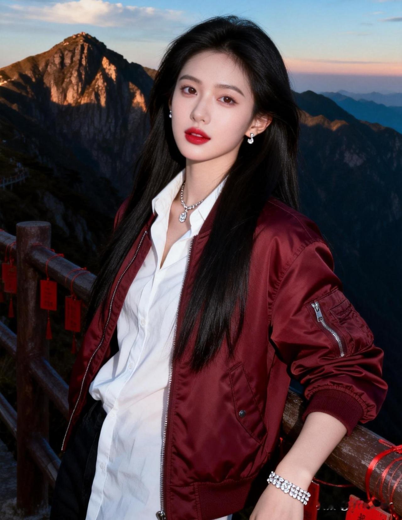 山巅少女,红衣飘逸,打卡绝美风景线!