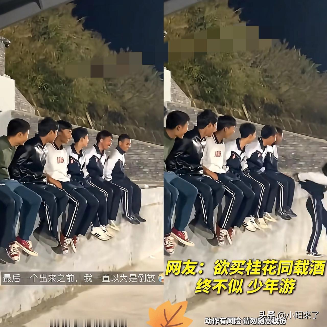 “没想到上人民日报了!”近日,云南,普洱七名高中男生下晚自习,准备回宿舍,经过操场,有一段台阶,想比谁能跳坐上去 前6人全程丝滑插兜跳跃,稳稳落座帅到飞起,最后1人铆足劲冲刺,结果狠狠磕到屁股,疼得蹦跳着跑开,全员笑到前仰后合! 没有这记翻车,顶多是段普通耍帅视频;偏偏这一下狼狈又鲜活的失误,让画面瞬间戳中人心,全网都跟着想起自己的青春。干净又纯粹的快乐,无关输赢,只藏着少年人的肆意与莽撞! 这哪是失误,分明是青春最戳人的标配!完美的瞬间千篇一律,那些笨拙的出糗、无厘头的欢笑,才是刻在记忆里最鲜活的模样,让青春有了独一无二的温度! 愿这群孩子都能珍惜这段青春岁月。致,我们回不去的青春!