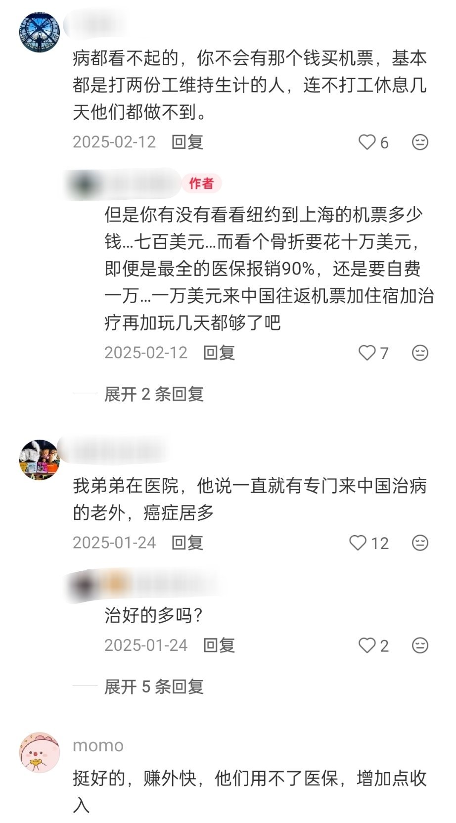 免签后老外扎堆来华看病去年就有网友预言,中美大对账之后,会有一大批老外扎堆来中国看病。美国人在美国根本看不起病,只有无休止的排队和天价医疗费,但美国人坐飞机来中国看病,已经是一种国际潮流了。