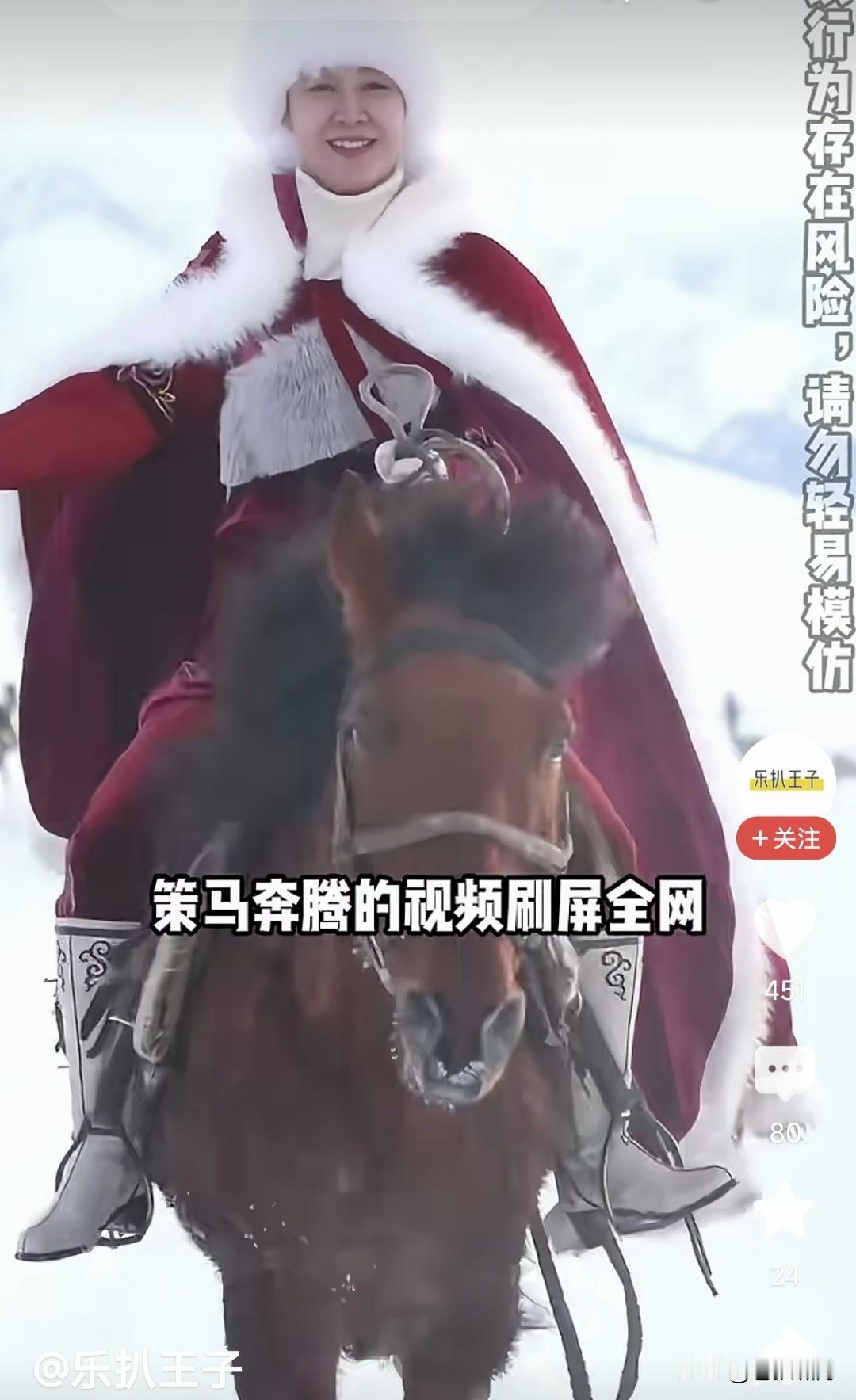 这几天总看到贺娇龙!红斗篷随风飘舞,纵马奔驰如飞,原以为是一名女演员!谁知竟然是新疆农产品“产销中心”主任,亚洲旅游“创新人物”,全国“三八红旗手”,新疆“文旅推介人”,被民众称为“马背上的女县长”! 看她事迹更令人感动!为推介新疆旅游与农产品,零下寒冷中坚持出镜;直播近400场,导致声带损伤;曾经3次坠马受伤,用药物止疼坚持工作。新年1月14这次坠马,因没带护具伤势严重,抢救无效永远离开这个世界! 这样的好人为何多灾多难?只因她太热爱家乡的土地,无私无悔为新疆人民工作!她的忘我奉献将被时代铭记,那身披斗篷策马飞奔的倩影,将永远留在百姓心中!但愿天堂无伤病,贺娇龙在那里健康平安,永远平安无恙! …………