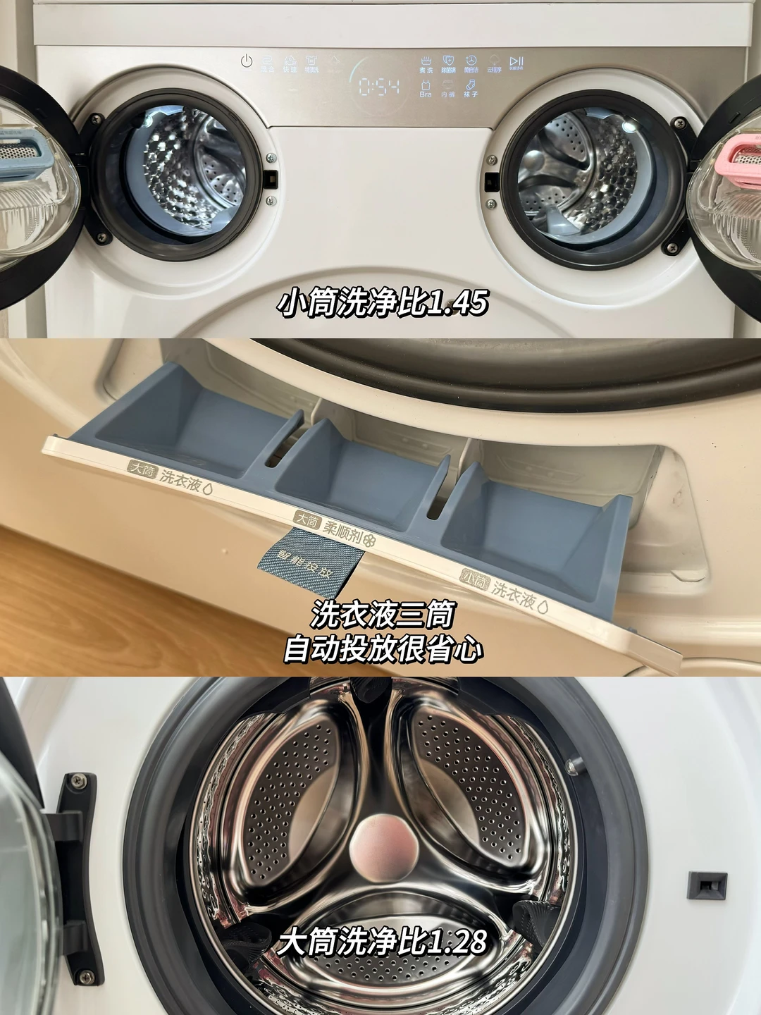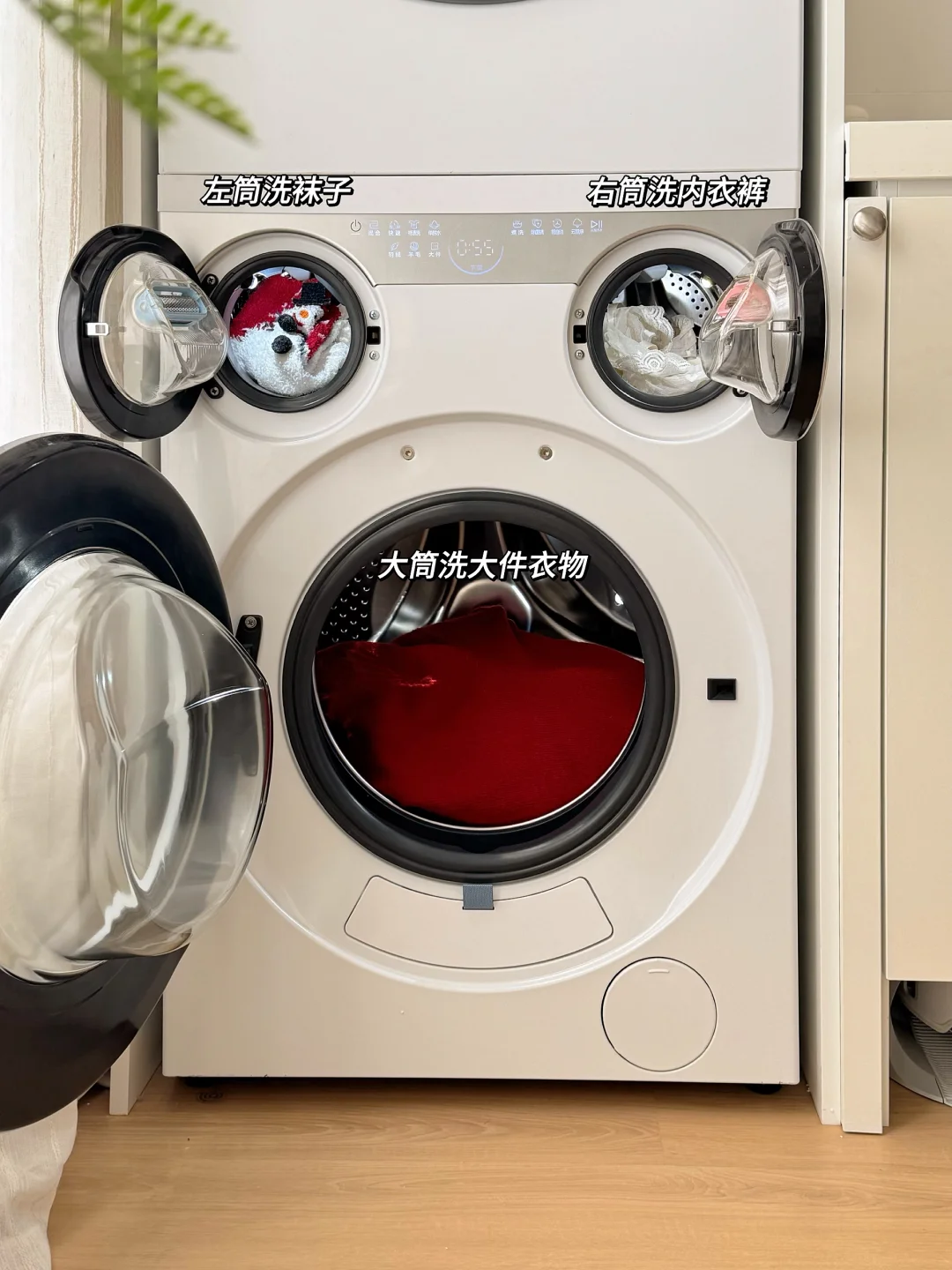 像我平时带娃兼工作,所以家务活上能偷懒就偷懒,当看到美的新推出的【可爱多四筒分区洗烘套装】立马就心动了❤️~