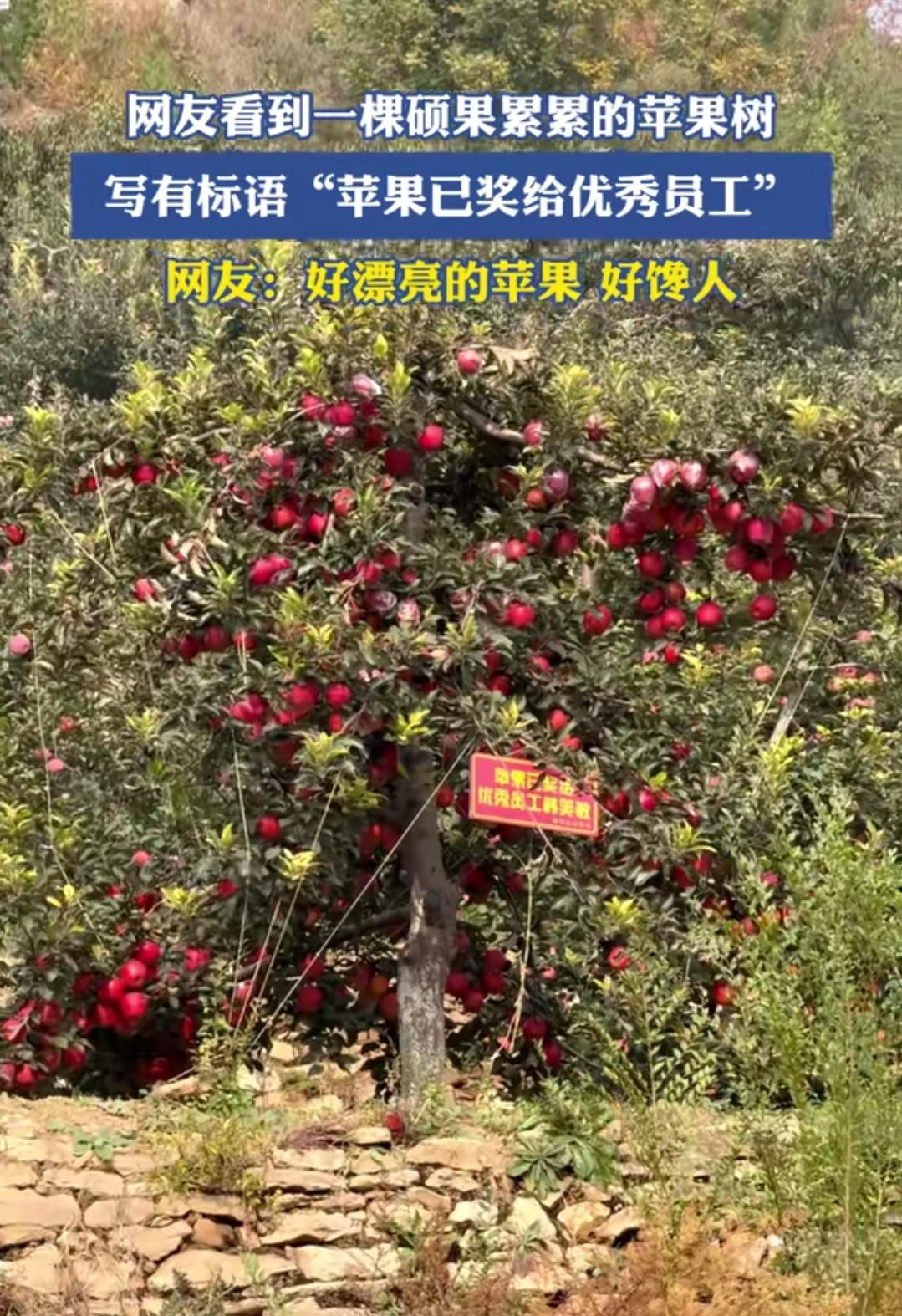 这棵苹果树为啥要特意强调已经奖励给优秀员工了,是因为想要的人太多了吗? 某地路边,有人看到一棵硕果累累的苹果树,上面挂着的苹果红彤彤的非常诱人,只不过上面挂着一个牌子,上面写着已经奖励给优秀员工xx了。 这苹果,想必很好吃吧[赞]