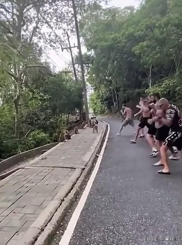 这次峨眉山上的猴子算是碰上对手了, 猴子见了这群外国人,也是直摇头啊, 一群老外去四川峨眉山旅游,在路上也碰到了游客们烦的不行的猴子,这些猴子见了游客就又想上去翻包找零食吃。 哪曾想,这可是一群老外,老外看到这些猴子靠近也非常警惕,立马就做出了攻击的架势。 而猴子眼看情况不对,也始终没敢向前,心里也在盘算,惹不起,他们是外国人,还是等下一波自家人吧。