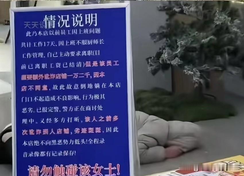 大妈躺店门口讹钱不成,反倒帮餐厅成了网红打卡地 河南商丘一商场里,有位大妈她戴着帽子遮着脸,雷打不动地趴在一家东北餐厅门口,从商场开门守到打烊,一趴就是好几天。 一开始大家还以为是餐厅搞的新奇营销,直到老板立了块牌子说明情况,大伙才明白咋回事。原来这大妈是店里的临时工,干了17天因为不服管理和店里起了争执,当场就离职了,而且工资当天就全额结清了。可她不满足,还狮子大开口跟老板要12000块补偿,老板没答应,她就用这招无声施压,把餐厅的客流直接腰斩了,把老板愁得直挠头。 就在这时候,评论区的网友们开始献计了。有人调侃着竖了块“香死个人嘞”的牌子,还有人提议让顾客和大妈合影,发朋友圈就送招牌菜。老板照着做了之后,没想到居然逆风翻盘了! 这大妈本来是想讹钱的,结果意外成了当地的打卡点。还有食客发现,大妈趴在地上的时候耳朵里还塞着耳机,感情是边听小说听歌边耗时间呢!