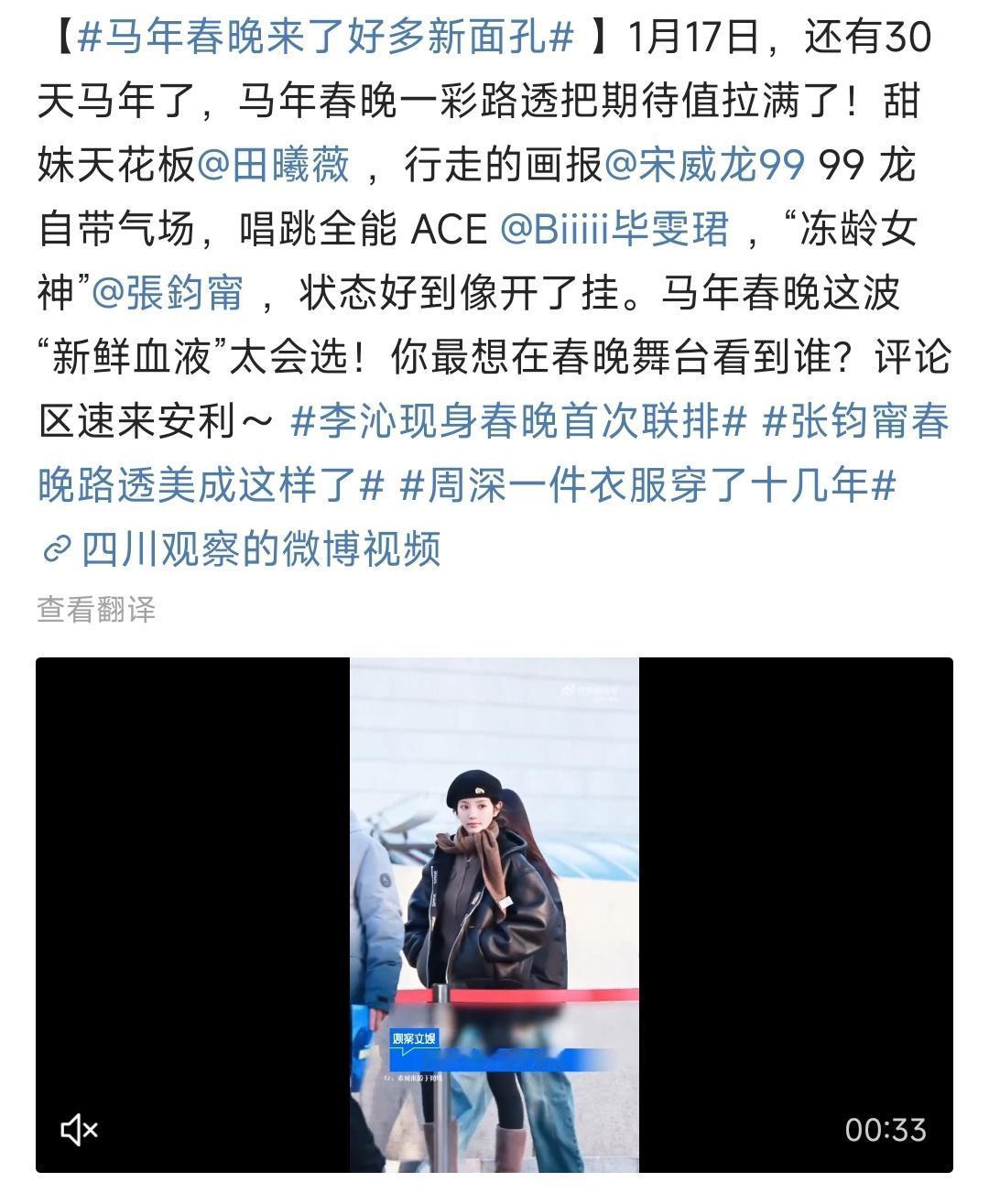 马年春晚又是年轻人的天下,看了媒体放出来春晚彩排路透。 铺天盖地都是年轻新面孔,有田曦薇、宋威龙、毕雯珺、张钧甯等等,都是一些年轻粉丝喜欢的偶像。 反而是70后、80后,甚至是60后这些老人们爱看的老牌艺人,好像都没怎么露面。 春晚舞台是不是应该照顾一些这些中年人或者老年人的感受?别天天整一些流量明星,多弄出一点老面孔来呗。