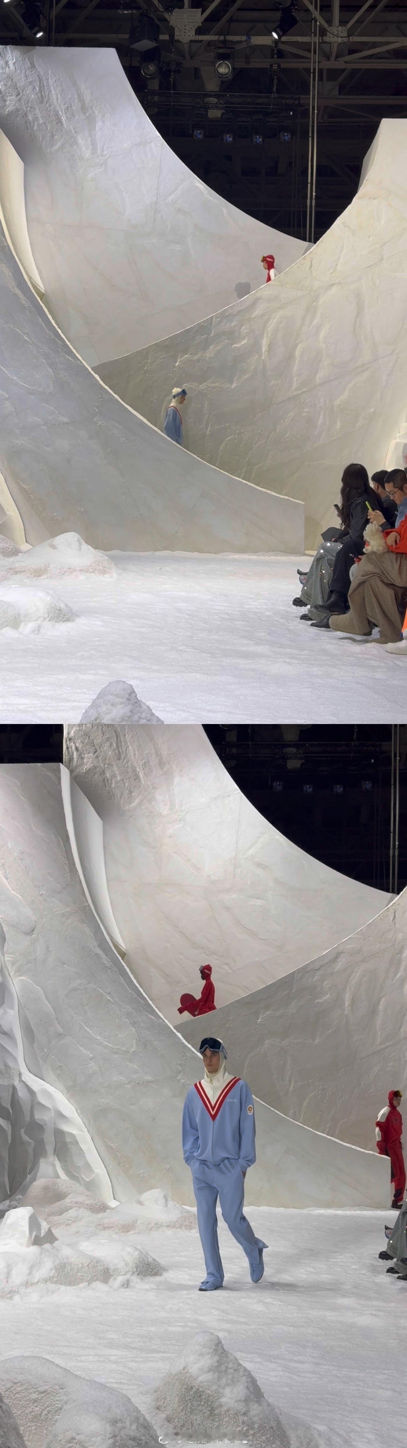 米兰时装周有一整个雪原场景 米兰时装周这是直接把雪山搬来米兰了吧!穿越高山火车站,检票口、小火车复古氛围感拉满,过了一会儿眼前直接铺开辽阔雪原,好像一个滑雪道啊,沉浸式从过去滑向未来,设计师的美商我真的佩服了