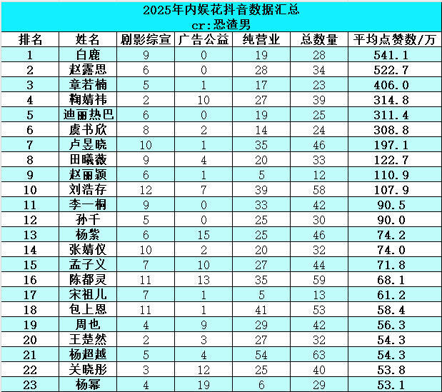 内娱女星短视频“有效营业”排名自从抖限制🚫艺人剧播期间只能发布三条剧宣今年各位女演员营业数量都出现大幅骤减没有数量刷脸 就看个人魅力和粉丝留存度
