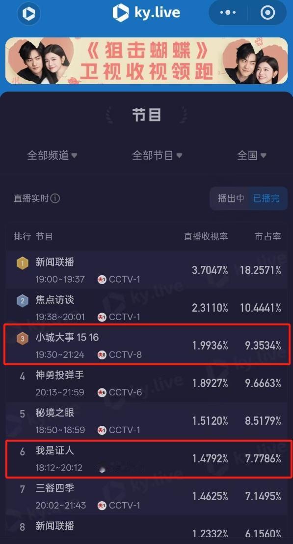 杨幂和赵丽颖粉丝又吵起来了 《我是证人》央六播出,粉丝截取了某一时段收视率说压过了《小城大事》收视率,《我是证人》甚至上了高位热搜,全是踩《小城大事》的,但事实上完播收视率,《我是证人》平均收视率1.4%,《小城大事》收视率1.9%,这属于用部分片面数据恶意挑事了。