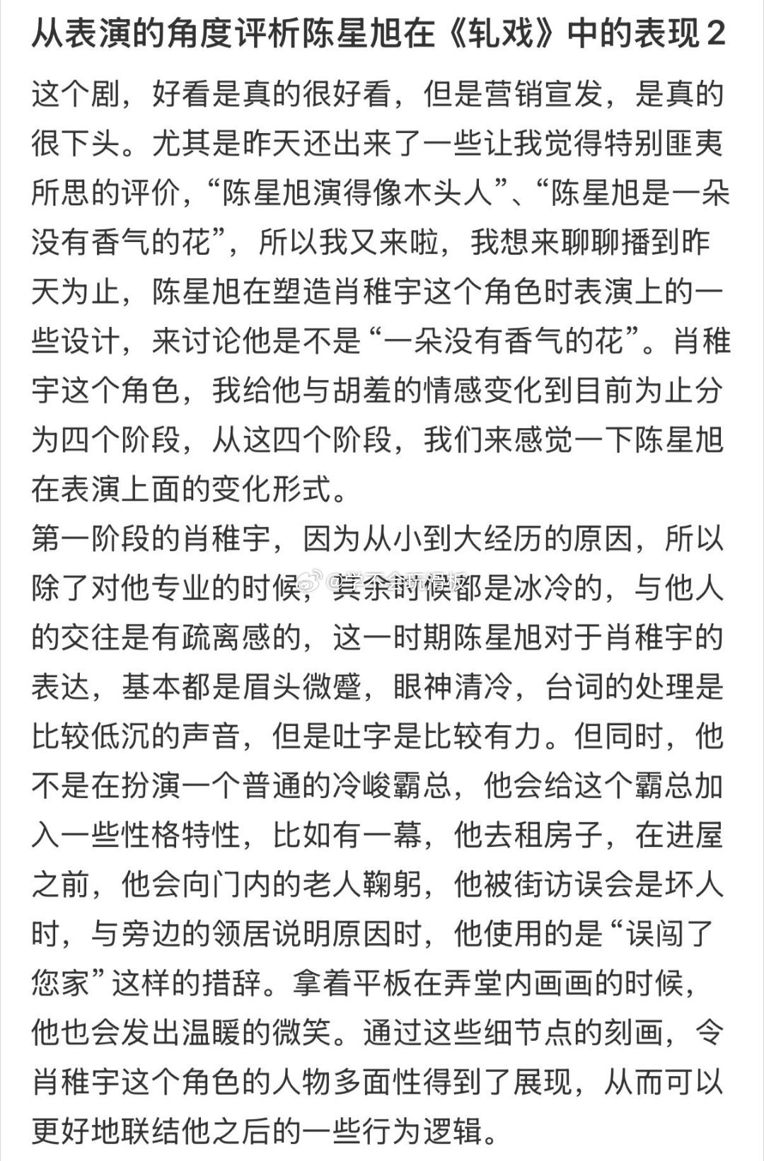 轧戏原著作者夸了陈星旭 这波属实是原著认证的适配度拉满!《轧戏》原著作者都盖章陈星旭的肖稚宇/秦宵一,演得太对味儿~他把秦宵一的强者气质恰好的拿捏,而肖稚宇的清冷疏离揉进眼神里,软下来的灵动小细节又甜得刚好,从外到内都贴满角色气质,细腻又戳人。