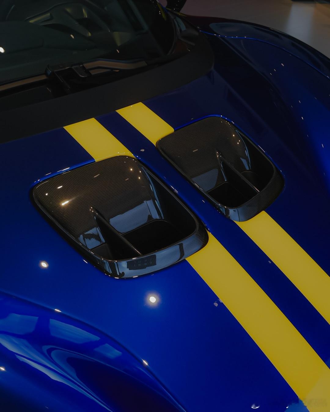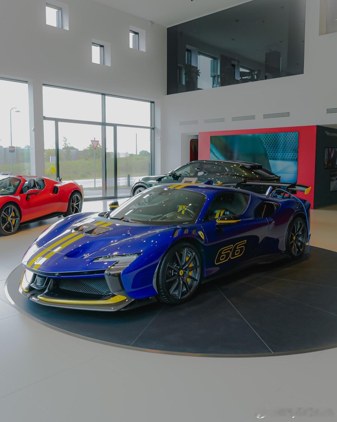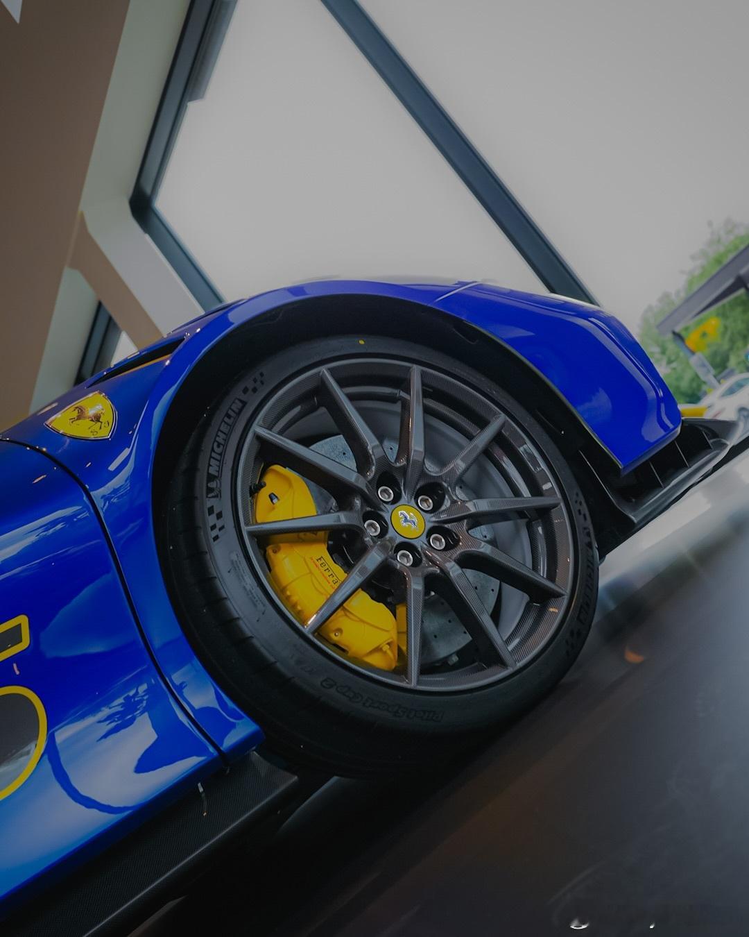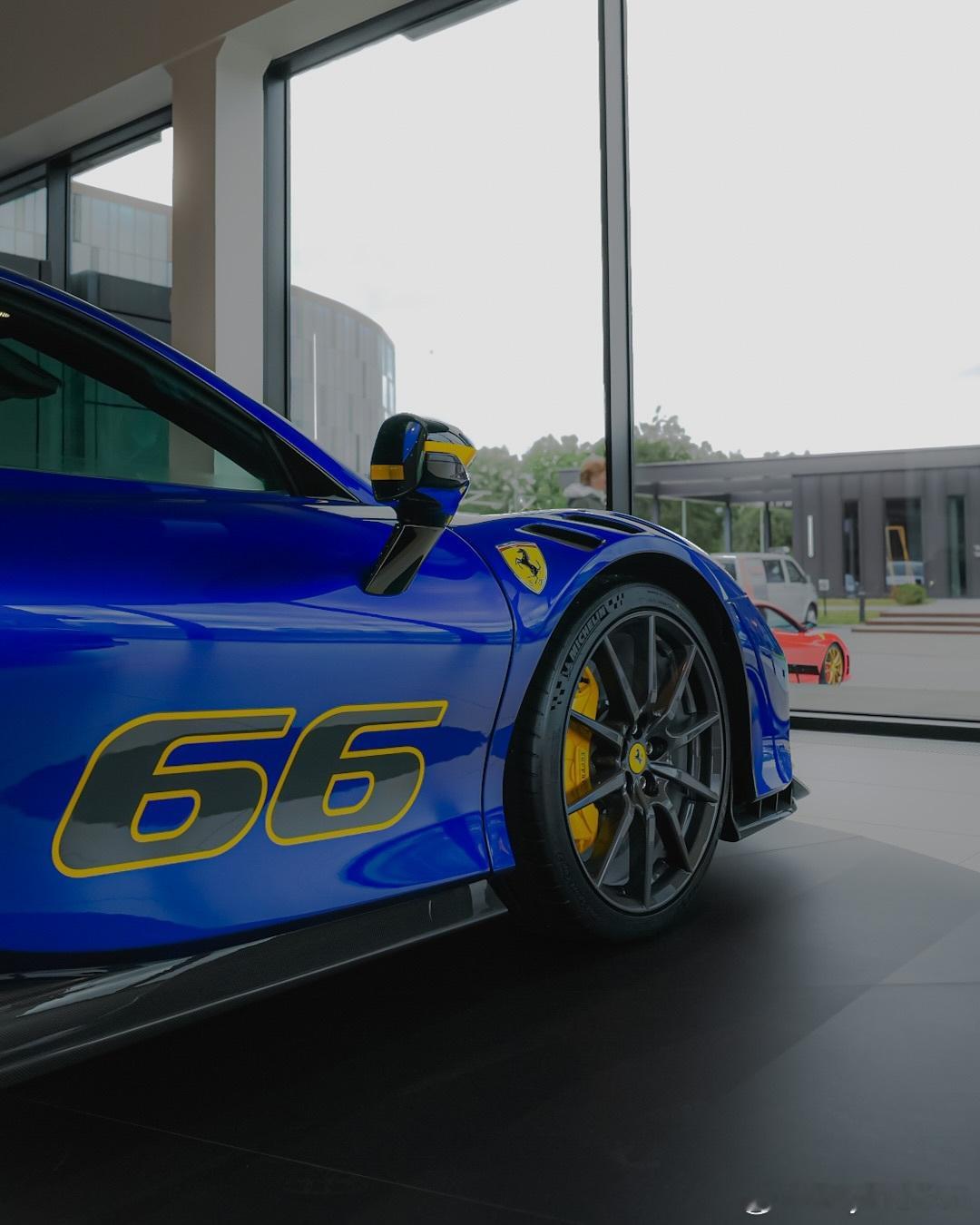 SF90XX 外观配色为Blu Elettrico,搭配Giallo Fly赛车拉花,同样颜色的拉花点缀还出现在了后视镜上,此外车门底部还有黄色镂空的66号赛车编号,并且选择了碳纤维轮毂。内饰方面应该又是默认的Nero Alcantara,交付于位于丹麦灵比的Formula Automobile。图片来自