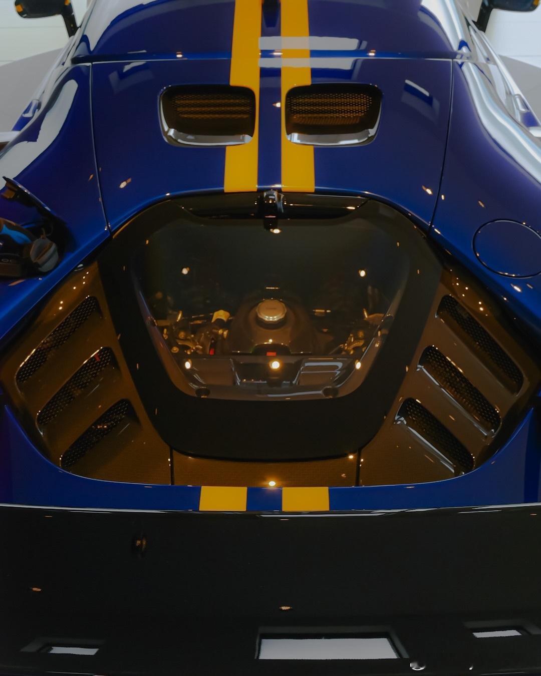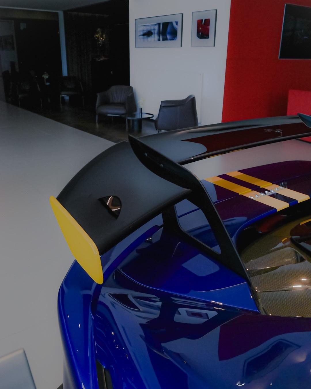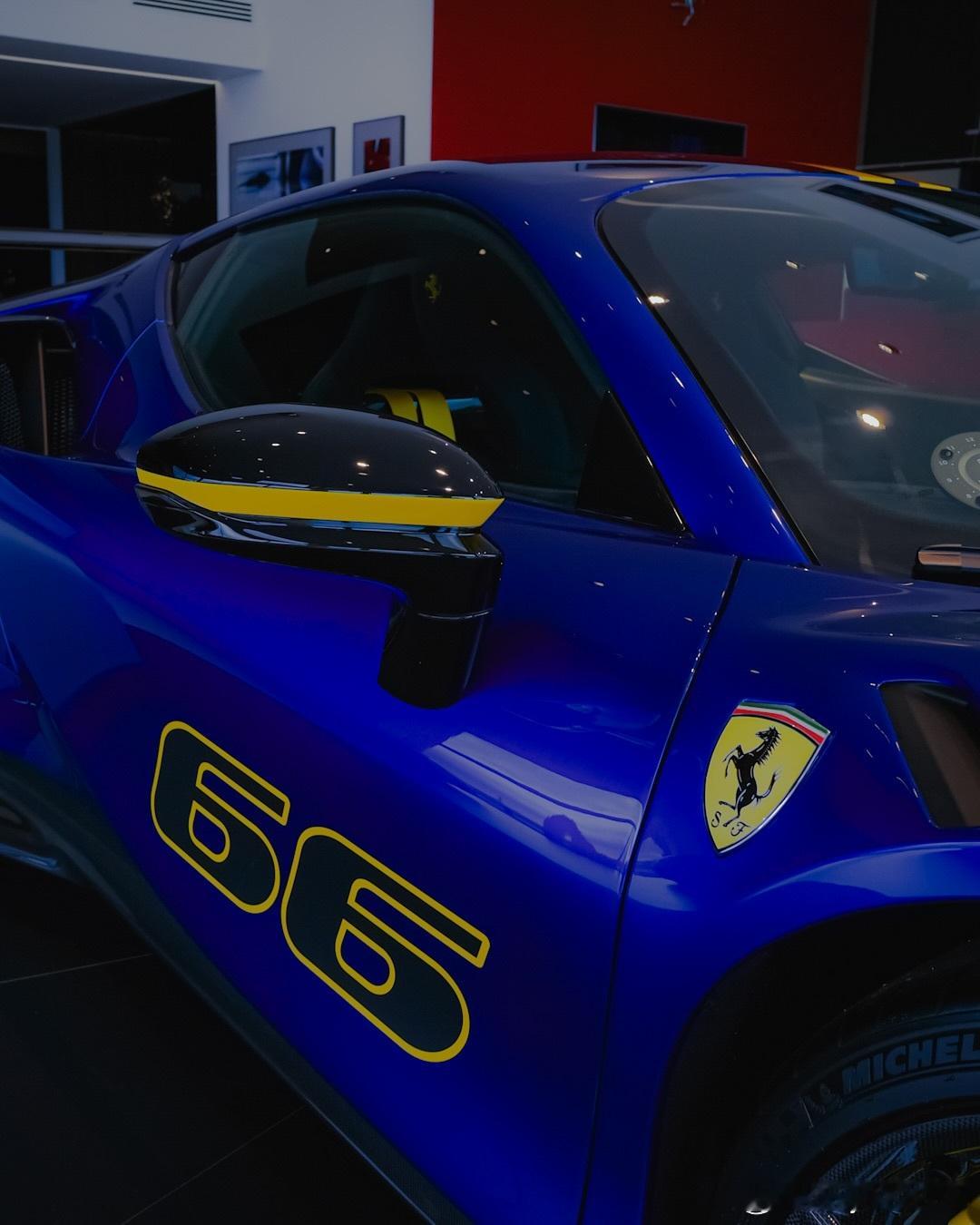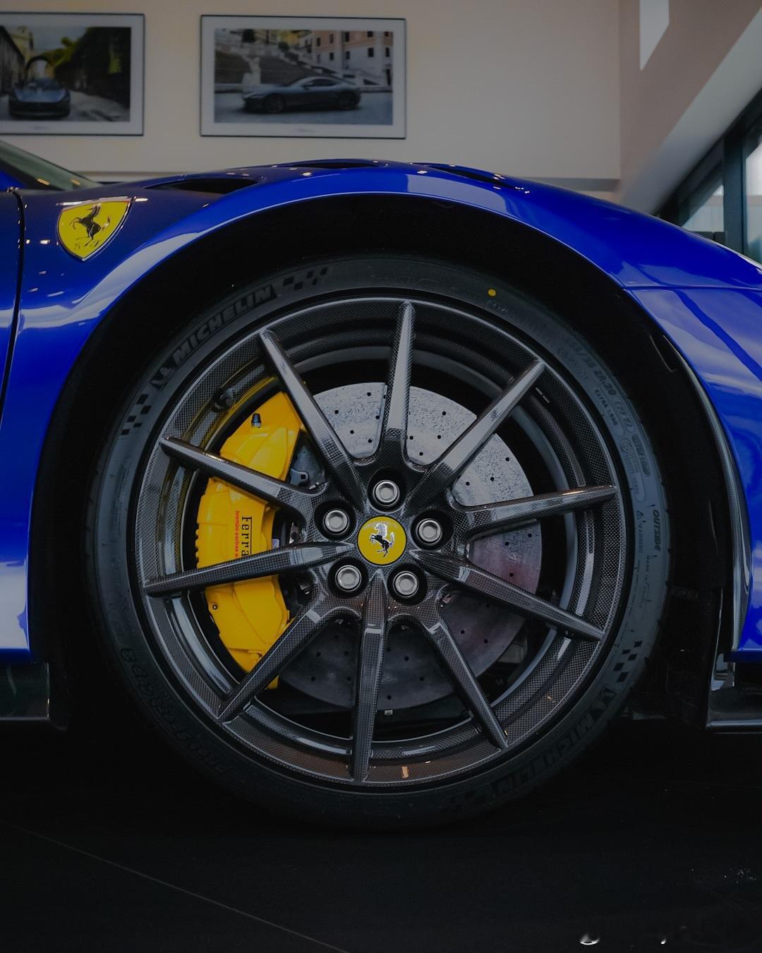 SF90XX 外观配色为Blu Elettrico,搭配Giallo Fly赛车拉花,同样颜色的拉花点缀还出现在了后视镜上,此外车门底部还有黄色镂空的66号赛车编号,并且选择了碳纤维轮毂。内饰方面应该又是默认的Nero Alcantara,交付于位于丹麦灵比的Formula Automobile。图片来自