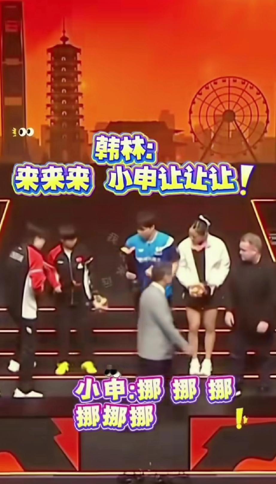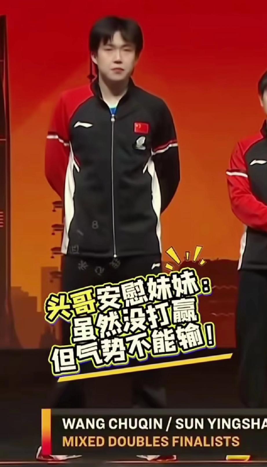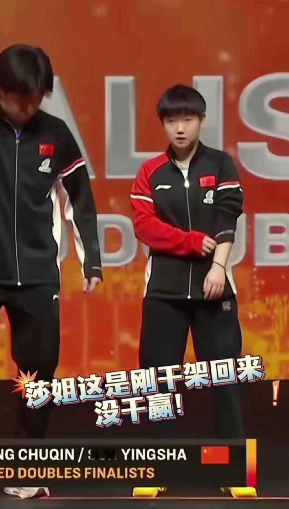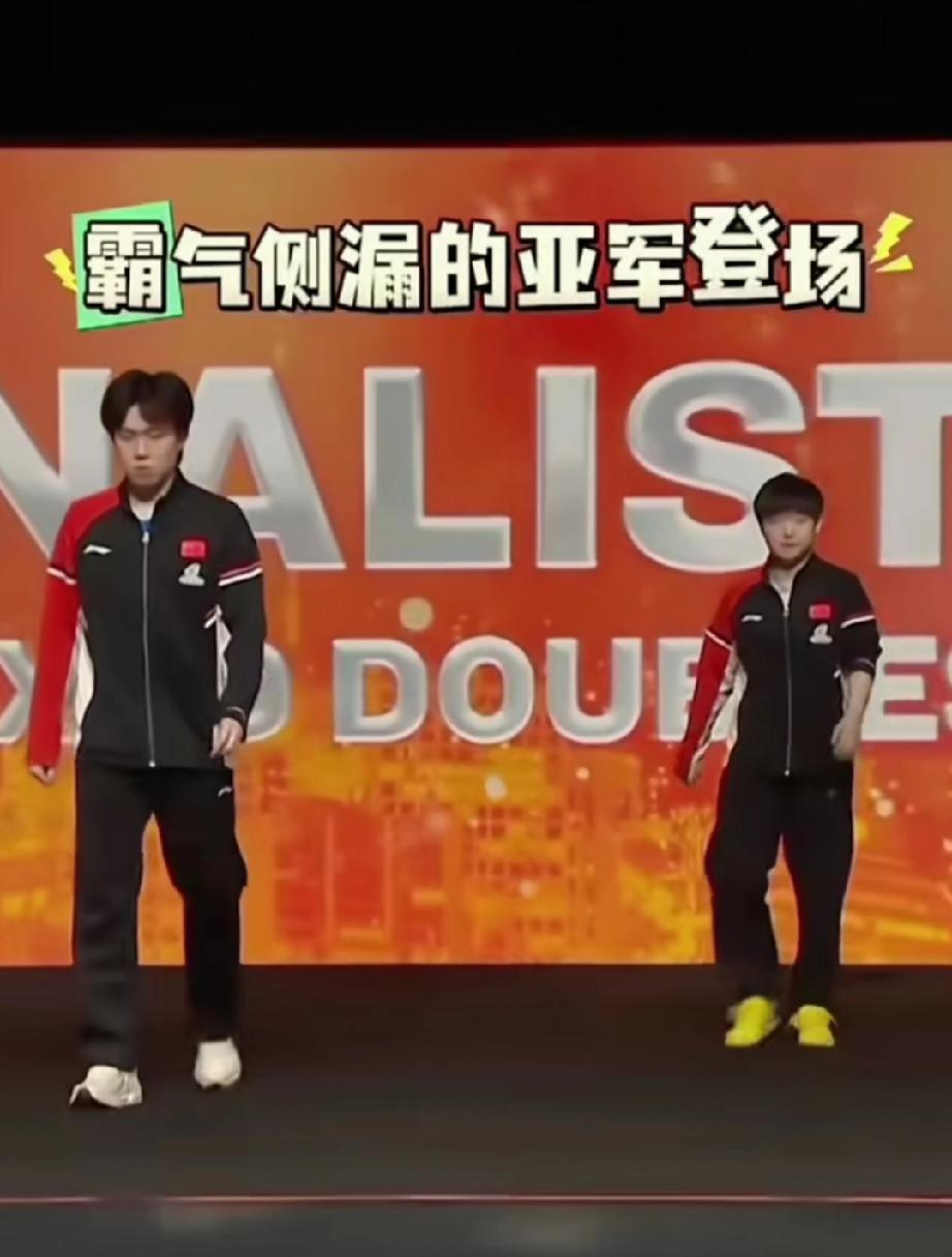 韩林和申裕斌虽然得了冠军,但是在领奖的时候面对莎头还真分不清谁是冠军。 WTT香