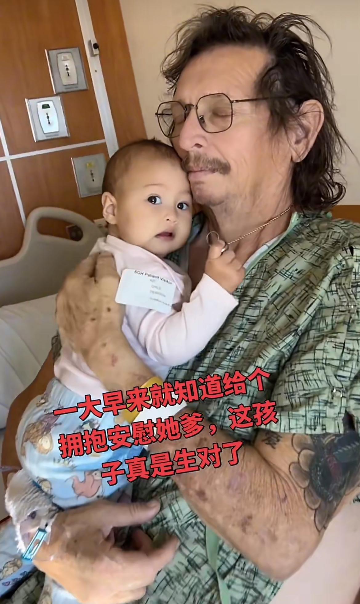 也不知道这个华人大姐是图什么,为美国低保老头生孩子,还含着手电筒给他剪脚指甲。这老头肚子那么大,乍一看还以为是个孕妇呢,老头已经很老了,他都需要别人照顾,而且孩子还那么小,这大姐可真拼,一个人照顾一老一小