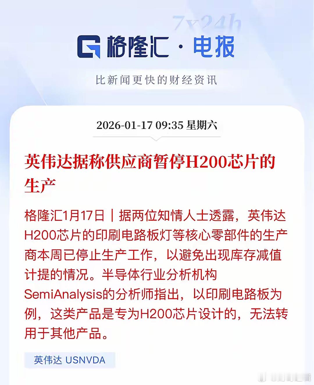 半导体设备芯片利好,国产替代下周继续涨,卖不动,根本卖不动了,英伟达H200芯片的核心零部件本周暂停生产,说明黄仁勋想用H200撬开的想法失败H200的无人问津,也说明一个问题,至少在这个等级的AI芯片已经有了替代品了。