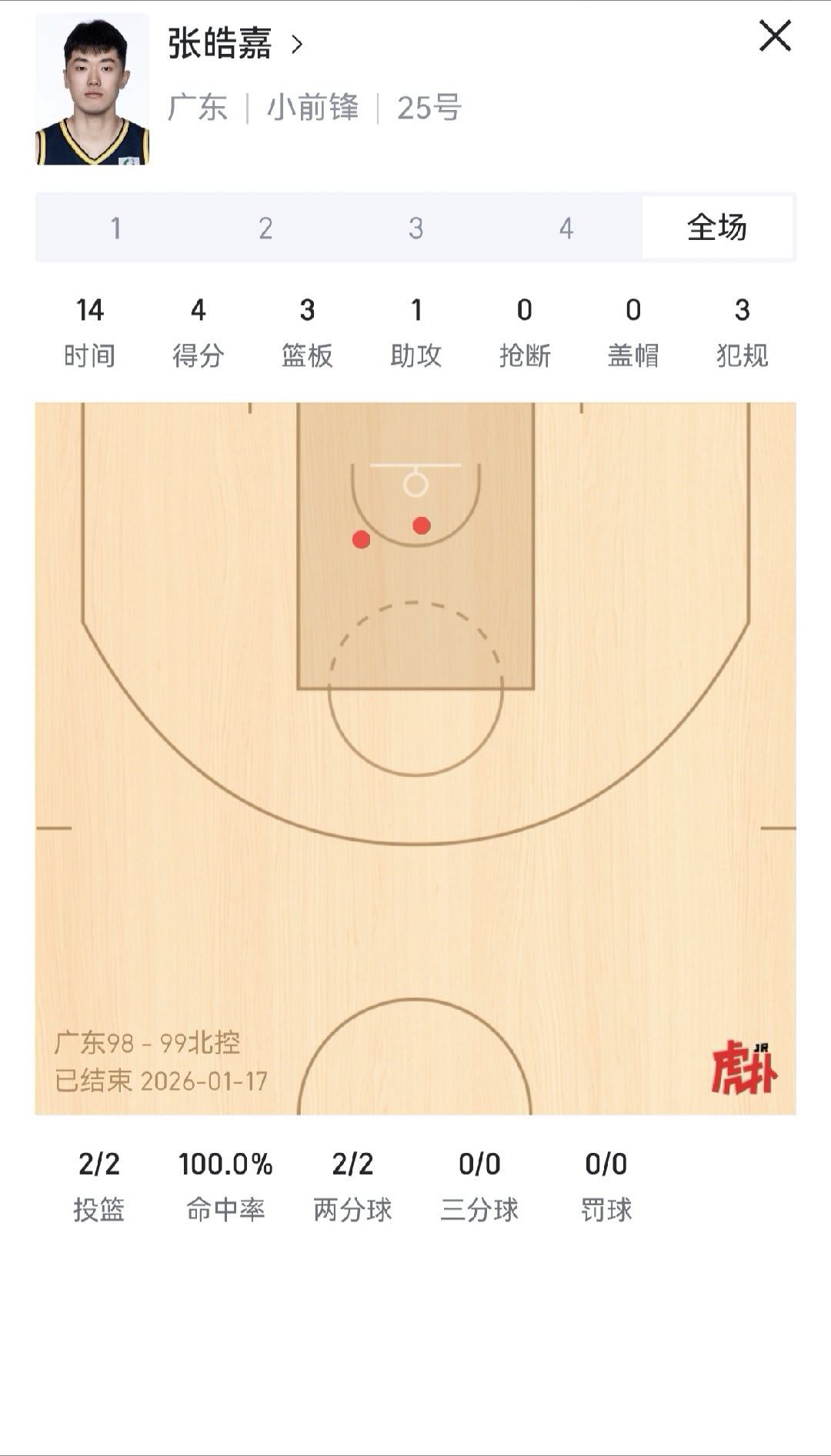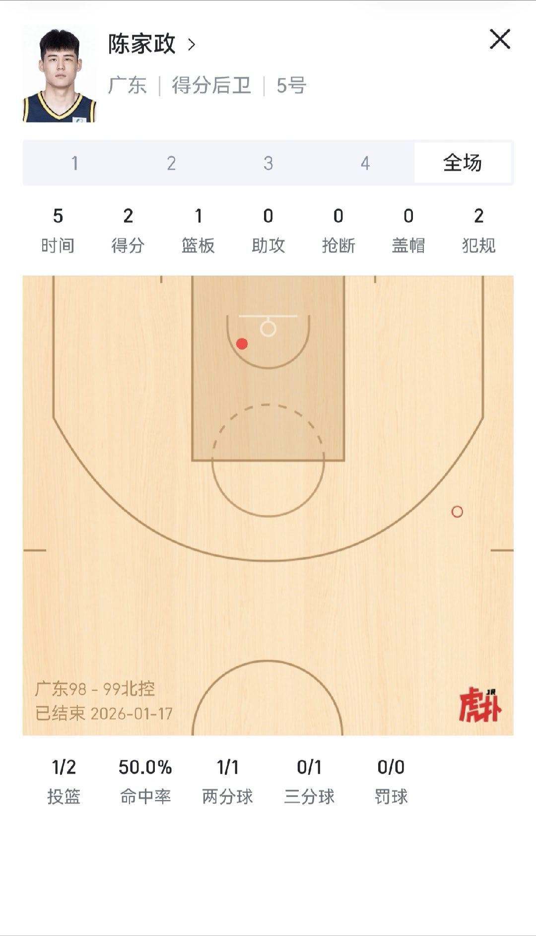 才发现,陈家政今天才打了5分钟。张皓嘉打了13分钟,而且第四节打了7分钟广东男篮vs北控男篮