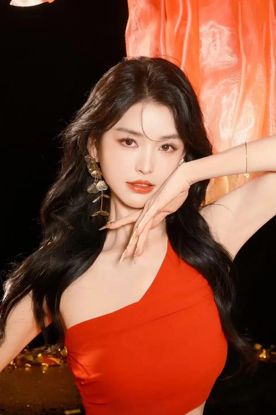 古典美人,花钿玉簪,红衣飘逸,韵味十足。