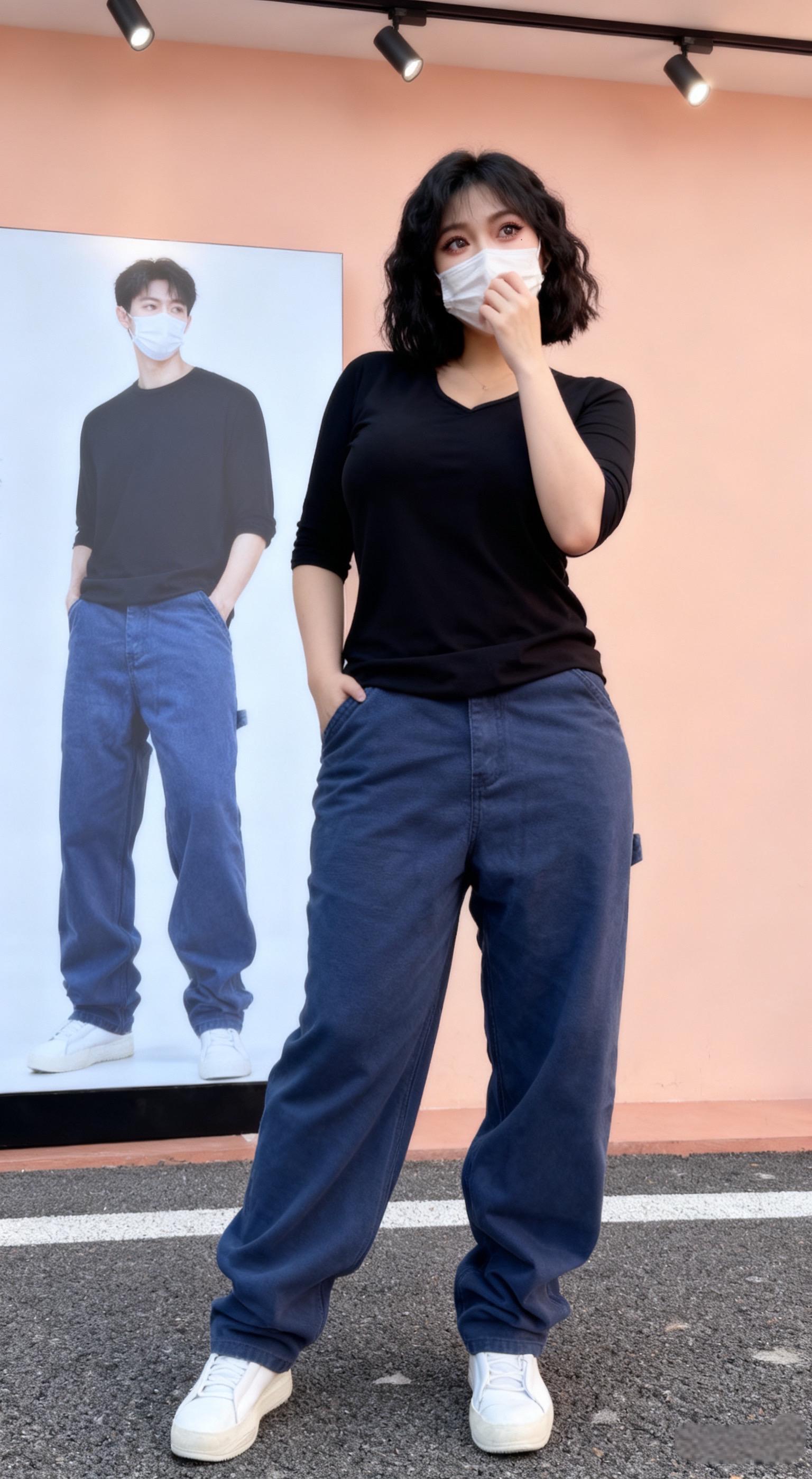 巴黎潮牌男士宽松直筒牛仔裤烫钻印花复古高街设计感亮片阔腿长裤