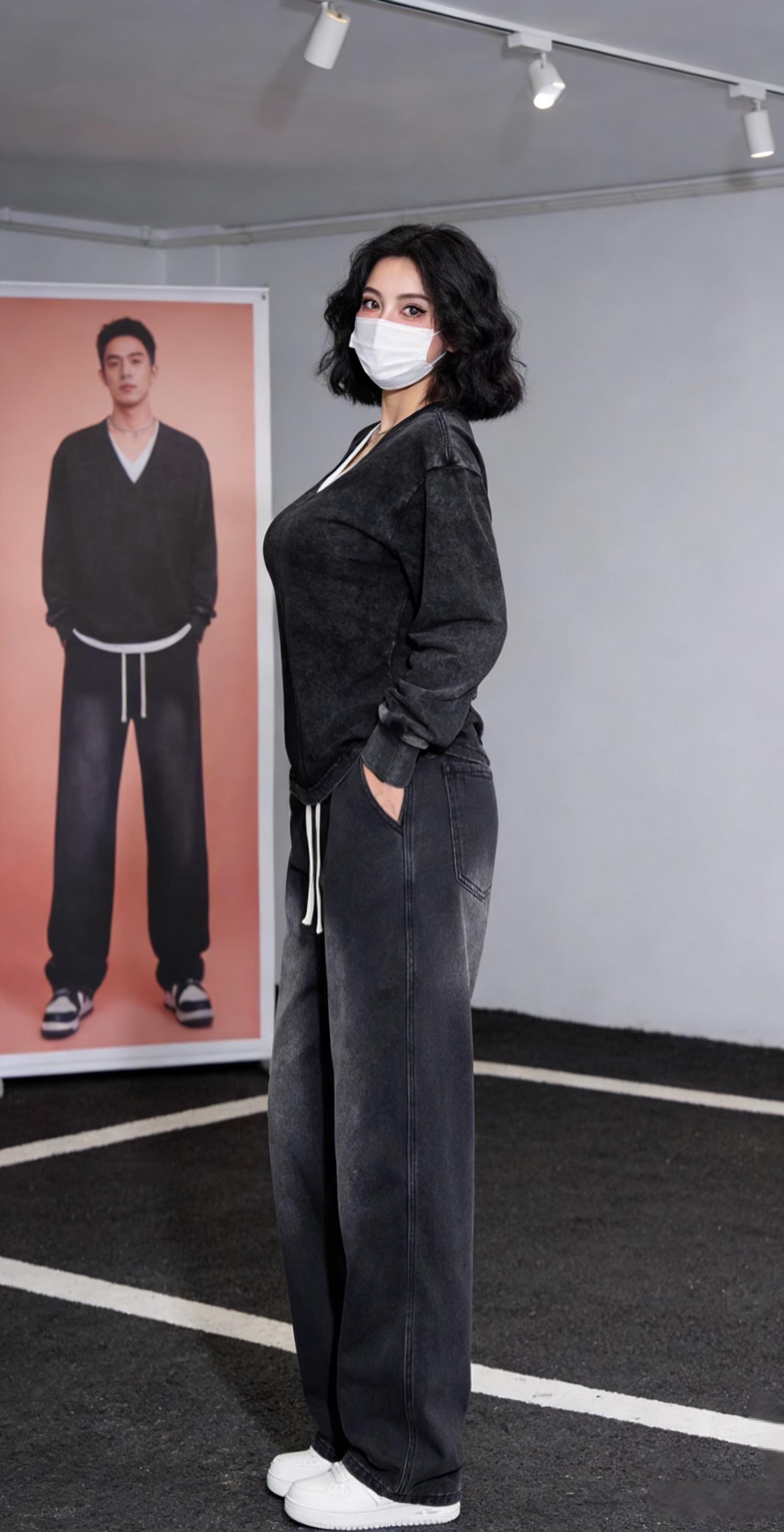 AYUE春季新款潮流复古高级感百搭宽松弯刀休闲长裤裤子休闲裤男