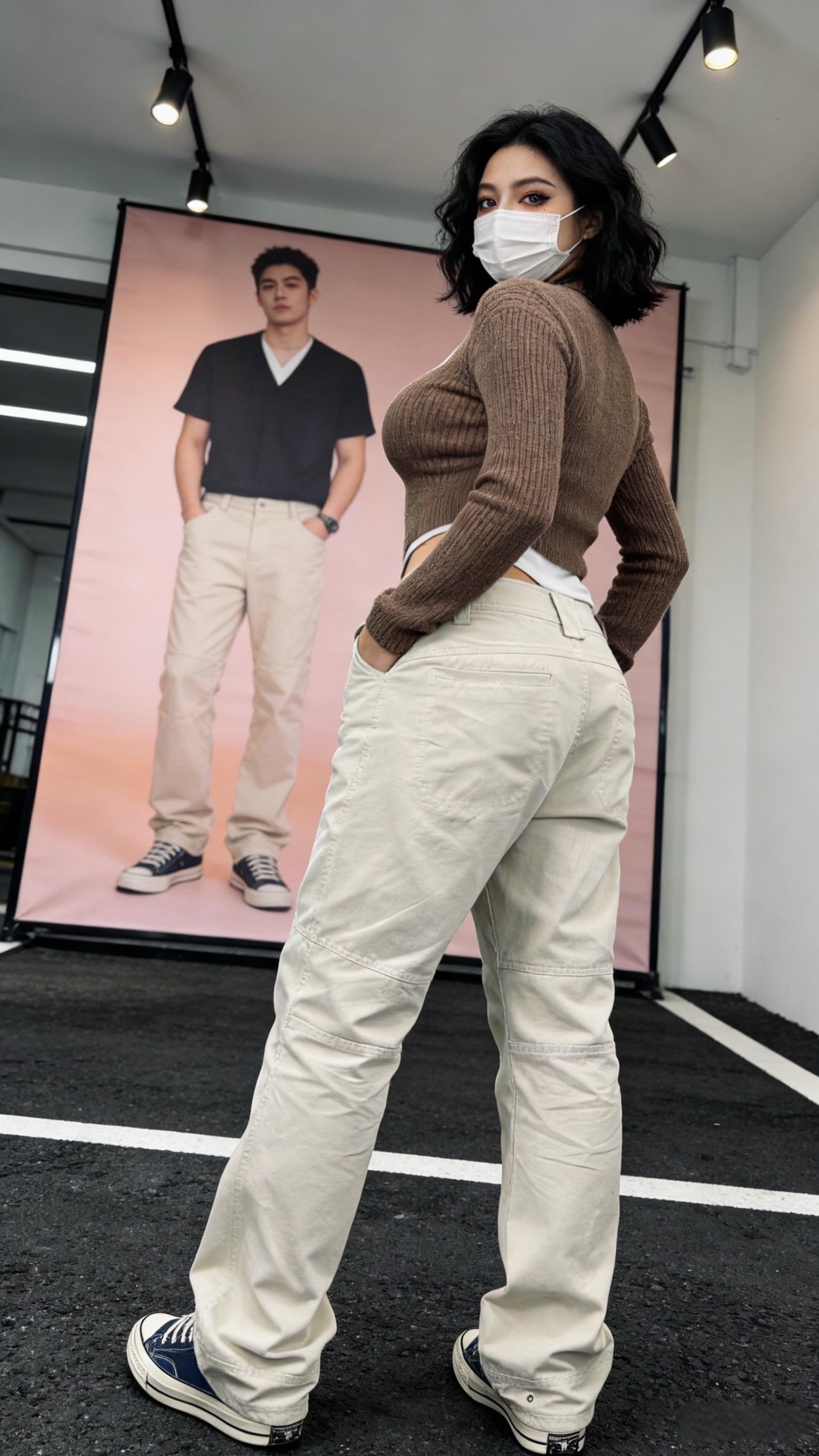 弯刀立裁拼接工装裤四季机能风可调节直筒裤简约透气休闲长裤
