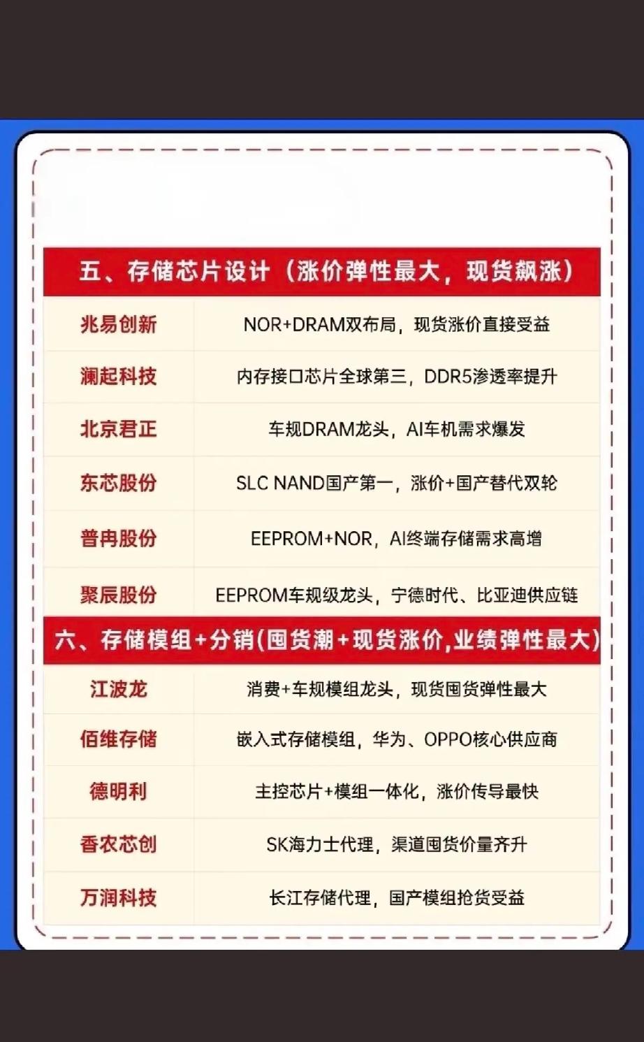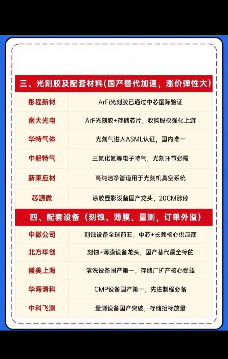 1月18日,明日A股这些股票有望大爆发!!! 存储持续涨价,半导体产业链核心股全梳理,光刻机整体研发板块:重点关注:张江高科、苏大维格、晶瑞电材;光刻机核心部件:重点关注:炬光科技、赛微电子、波长光电;光刻胶概念股:重点关注:彤程新材、南大光电、华特电气!!!