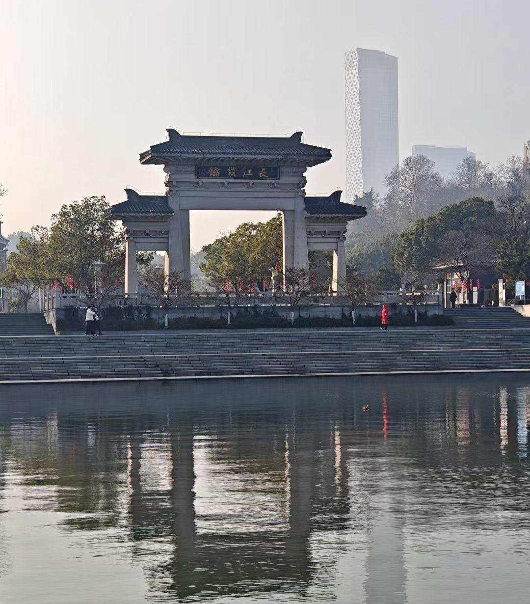 古牌坊的影子浸在湖水里,远处楼宇与薄雾缠绵,连光阴都在这水天间慢成了散文诗。 🌫️ 湖水把牌坊与树的轮廓揉进涟漪,晨雾里的城市半醒着,行人走过,便踏碎了一镜的静谧。 🏙️ 石牌坊立在水畔,像从旧时光里走来的信使,远处高楼与近处树影,在雾中共享这帧温柔的平衡。