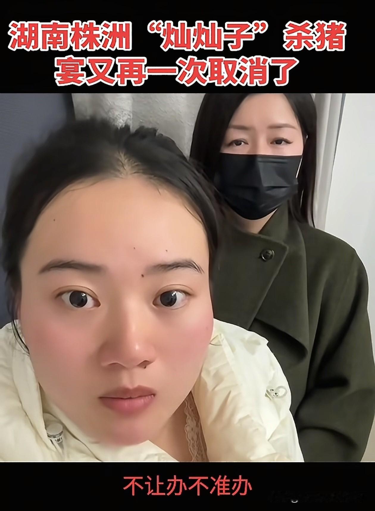 灿灿子的杀猪宴再一次取消了!灿灿子说,她们碰上了不可抗力因素,直接通知她不准办,