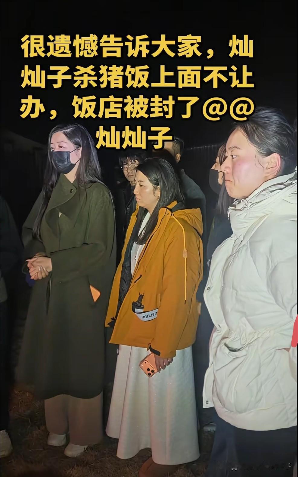 灿灿子的杀猪宴再一次取消了!灿灿子说,她们碰上了不可抗力因素,直接通知她不准办,连带饭店也被封3天,那估计是出于安全考虑吧,万一发生点事故谁也承担不起。 看灿灿子眼睛瞪的跟铜铃一样,感觉心里挺不服的,有点想不明白了,难道他们没有提前去报备,还是说报备了,但看到人太多,才临时取消的。 不过灿灿子这眼神真有点吓人,她这个视频明显有点在发泄不满了,初心不正就注定是这样的结果,也怨不得谁! 这简直是2026年最大的“杀猪盘”,三番两次的取消,把网友耍了一次又一次,昨晚下班回来看别人直播,很多人昨天就赶到了那场地,还有人坐高铁连夜往那赶,现在估计把这些人气的够呛!