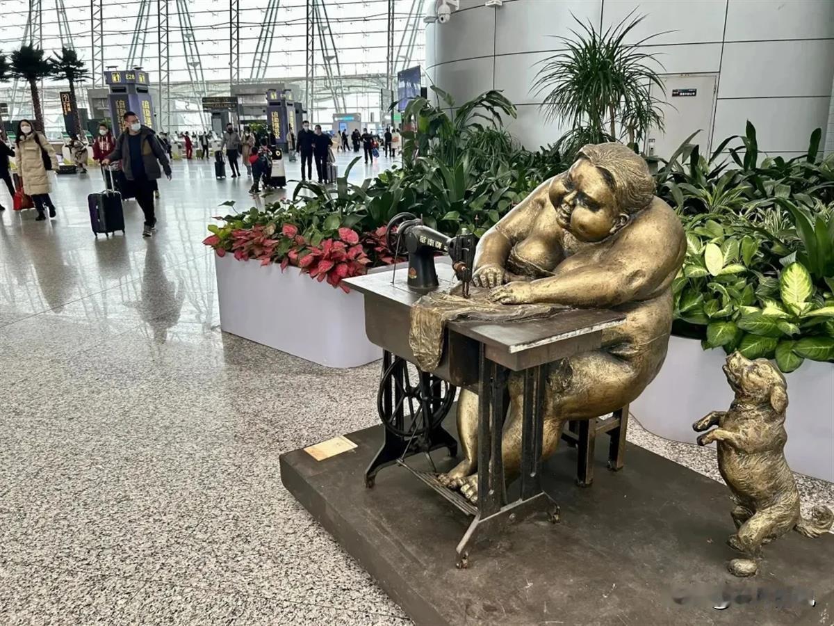 白云机场这尊“肥婆缝衣”雕像,创作者或许想走“接地气”路线,把丰腴当“福气”来诠释,但放在日均客流量超10万的国际机场,这种刻意夸张的肥胖体态、近乎戏谑的表情,与其说是艺术表达,不如说是对中国女性形象的故意丑化。 机场作为城市的第一窗口,雕像艺术本该是城市的文化名片,摆上这样一尊丰乳肥臀丑态十足的雕像,与其说是艺术自由,不如说是审美的戏谑。不知创作者丑化中国女性形象居心何在?