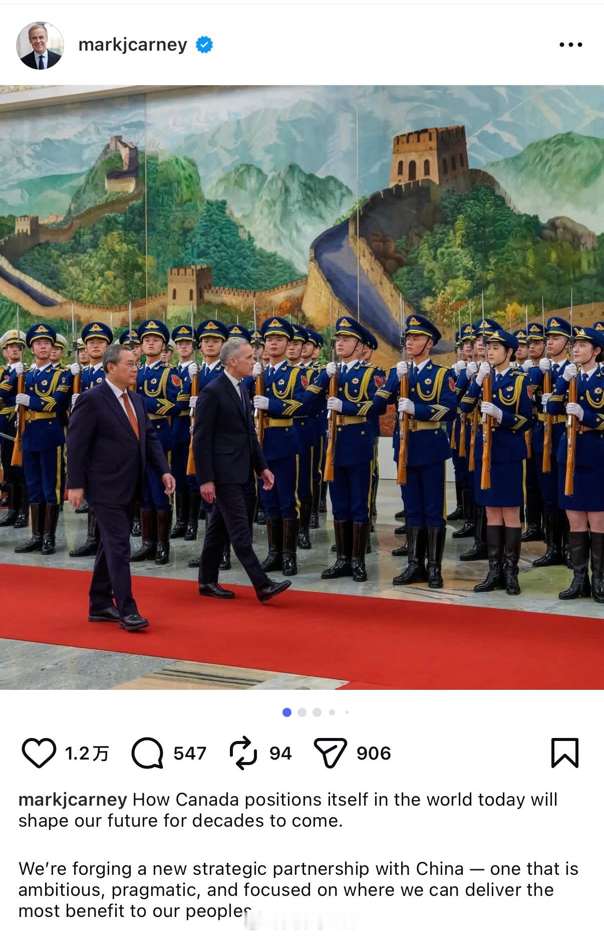 卡尼IG发布访华组图,评论基本全是赞扬说两句,马斯克的右翼X其实是国外这几大社交平台人流量最少的,但国人用的多,所以造成卡尼访华所谓“风评不好”的原因;卡尼去年当选接近9成的得票率,另外X上骂卡尼的很多其实都不是加拿大人热点现场全网热点共创计划