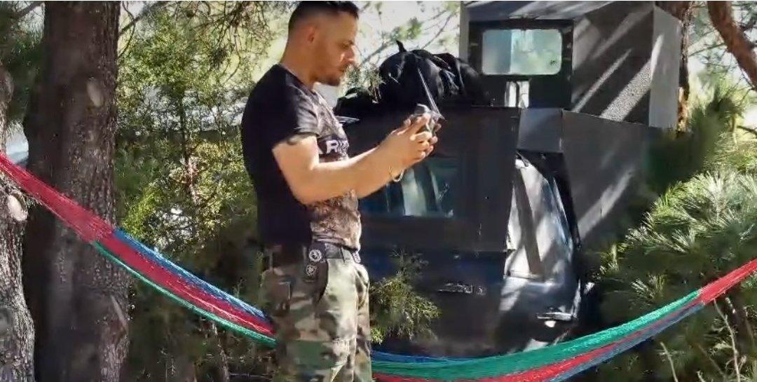 照片中的男子被确认为“El R8”或“El Temach”,据信是“新华雷斯贩毒集团”(Nuevo Cartel de Juárez)的高级头目。该集团是与历史悠久的华雷斯贩毒集团武装分支“La Línea”有关的一个分裂派系。这些照片是在奇瓦瓦州地盘争夺战不断升级的背景下泄露出来的。 照片显示,这名男子身穿迷彩服,在树林中一辆定制的装甲“怪物”车辆附近测试无人机。这些图像突显了贩毒集团越来越多地使用无人机技术进行侦察和攻击,正如墨西哥国防部(SEDENA)关于2025年边境冲突的报告中所记录的那样。 这些照片于2026年1月17日发布,其目的可能是为了在社交媒体上展示其作战实力,从而引发人们对墨西哥支离破碎的有组织犯罪集团内部竞争或招募活动的猜测。