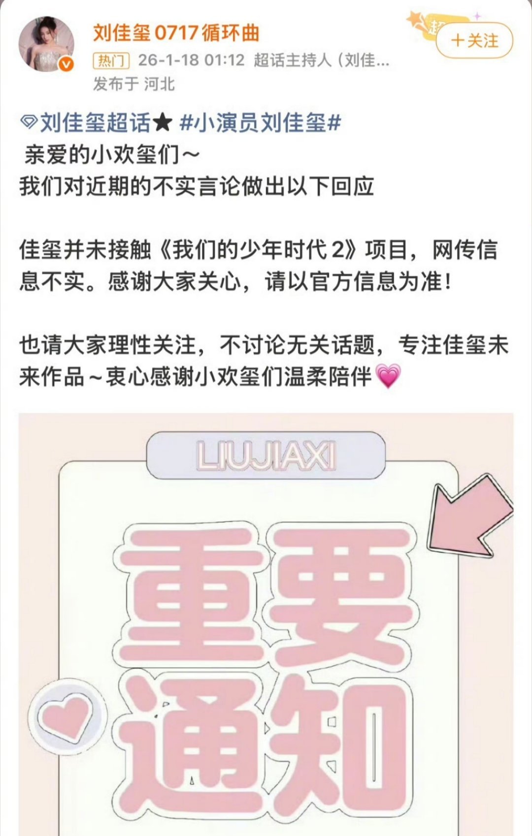 刘佳玺后援会发文否认出演《我们的少年时代2》,称并未接触该项目!我们的少年时代