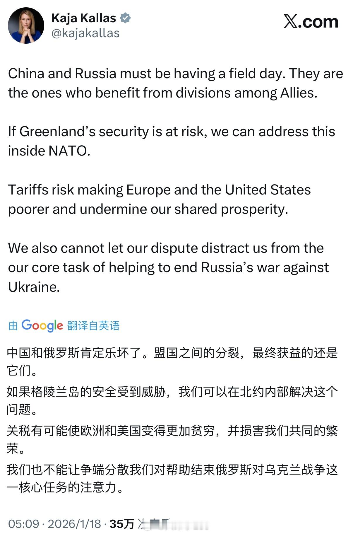 特朗普要吞并格陵兰并征收关税,卡拉斯这还能扯到中国和俄罗斯,老陈骂的没错,婊子一个其实我很少发卡拉斯的新闻,因为这女的确实太蠢了,欧盟靠这些人我就放心了特朗普因格陵兰岛向欧洲8国加税