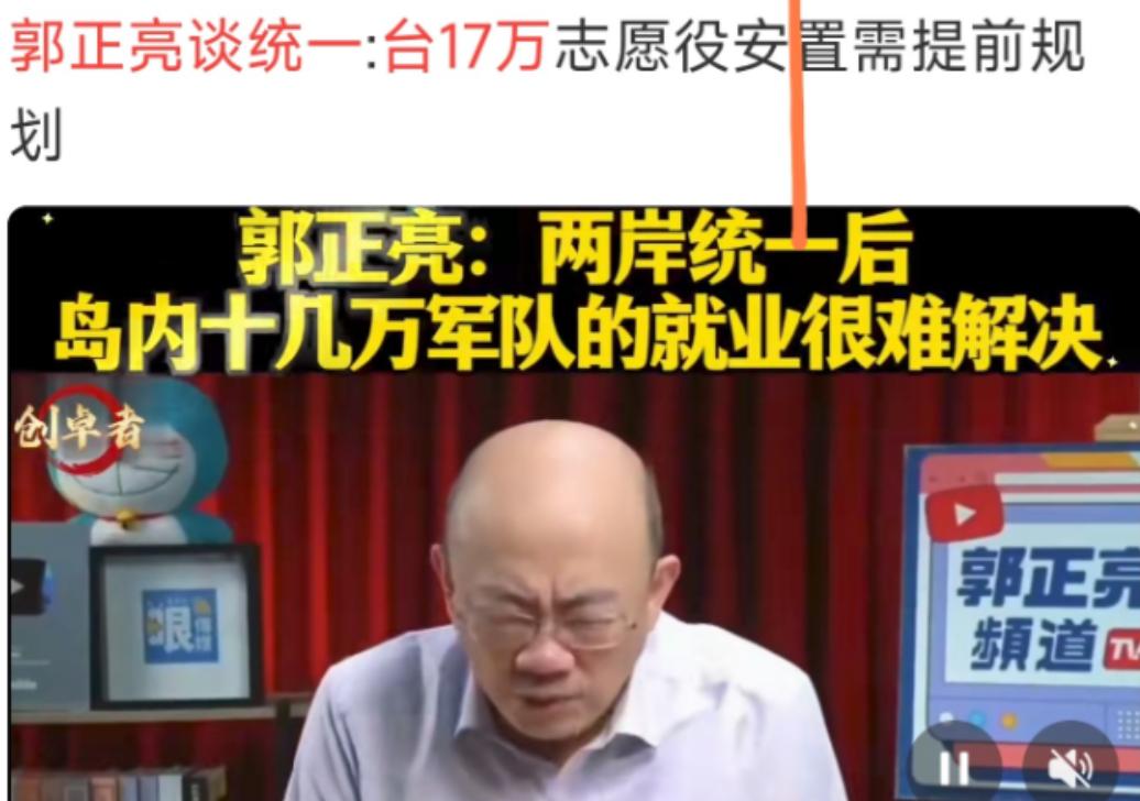 台湾郭正亮提出问题:两岸统一时大陆要在岛上驻军,那么台湾的十七万军人怎么办?这就是个很难解决的问题! 郭正亮说这是难解决的问题,其实是没看透两岸统一后的处置逻辑,根本算不上无解的难题。首先得说清楚,台湾所谓的十七万军人,实际规模早就缩水了,2024 年台军志愿役人数已经降到 15 万,部队实际人数和编制人数的比值只有 78.6%,短短四年就下降了近 10%,而且基层军士提前退伍的数量四年里涨了四倍,很多人本来就不想继续留营,处置压力远没数字看起来那么大。 两岸统一后,核心原则是分类处置、保障权益,大陆有成熟的政策和经验,不会让这些军人没着落。大陆 2024 年 9 月实施的《退役军人安置条例》,对所有退出现役的军人都有明确安置办法,台湾军人作为中国军人,自然也适用这个体系,不会另起炉灶搞特殊,更不会不管不顾。 先看义务兵,这部分人服役期短,本身就快到退伍年限,统一后符合条件的直接按规定退伍。大陆对自主就业的义务兵,会发放中央财政安排的一次性退役金,地方政府还会根据当地情况给补助,要是服役期间立过功,退役金还能按比例增发,最高能增 25%。他们回到社会后,还能享受免费就业培训,找工作时在公务员招录、国企招聘里都有优待,这都是有明确政策保障的,不是口头承诺。 再说说军士,这部分是台军基层骨干,但留营意愿最低,主要是蔡当局年金改革搞垮了待遇。以前台军一等士官长服役 35 年,每月能拿近 7.9 万新台币退休俸,改革后分十年逐年递减,最后只剩 6.6 万,每月少拿 1.2 万多,这也是很多人愿意提前退伍的原因。 统一后,愿意继续服务的军士,符合条件可转入地方安保、应急救援等队伍,发挥专业特长;不愿意留任的,要么按规定逐月领取退役金,要么由政府安排进国企、事业单位工作,服役年限还能算工龄,退休待遇比台军现有标准更稳定,不会出现逐年减薪的情况。 对于军官,处置会更注重专业匹配。高阶军官愿意退休的,按大陆退休军官待遇保障,由安置地政府做好服务管理;想转业的,政府会根据他们的职务、专长和工作需要,通过考核选调、双向选择等方式安排岗位,机关、国企、事业单位都有接收渠道。基层军官要是有作战、技术专长,经考核合格后,也能纳入相关岗位体系,不会浪费专业能力。 还要说的是,大陆对退役军人的保障不是纸上谈兵。每年大陆都有数十万退役军人顺利安置,就业率保持在高位,退休军人的医疗、养老待遇也在逐年提高。 对比之下,台军现在连人员都招不满,2025 年志愿役士兵招募目标 1.7 万多人,到 7 月底报名才 2400 多人,男兵严重短缺,可见其自身体系早已运转不畅。统一后,台湾军人能纳入更完善的保障体系,不管是留任还是转业,都比现在更有保障。 说到底,这个问题的关键不是难解决,而是有没有完善的制度和诚意。大陆的退役军人安置政策经过长期实践,能覆盖不同层级、不同需求的军人,再加上台湾军队实际规模缩水、部分人员本就有退伍意愿,处置起来完全有章可循。统一是为了全体中国人的利益,台湾军人作为同胞,其合法权益只会得到充分保障,这既是政策要求,也是同胞情谊的体现。
