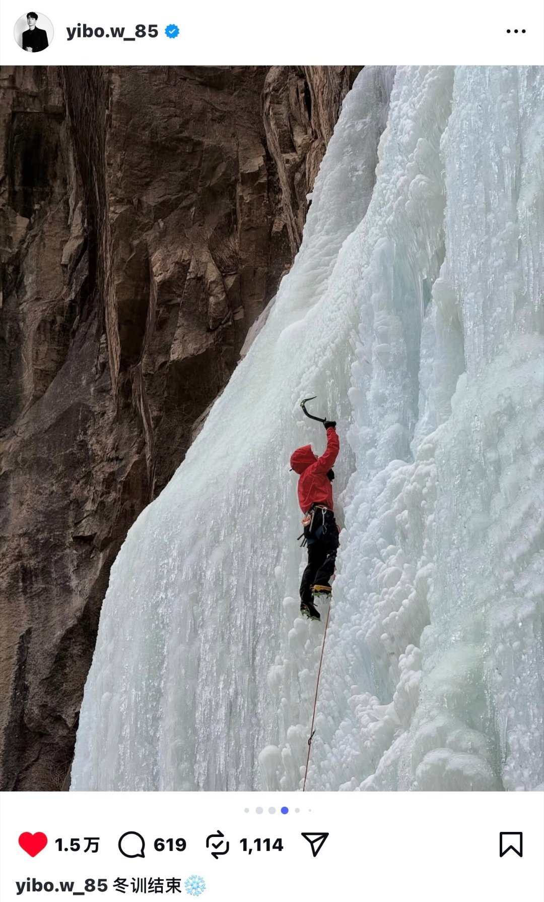 王一博王一博晒攀冰照难道王一博是为了2026年第三届北京攀冰公开赛而去训练的?全球气候变暖冰川消融国际上真的很重视,也越发让我觉得王一博攀冰更有了社会意义。