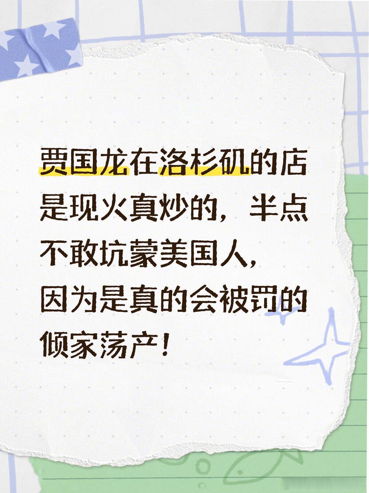 我现在才发现,贾国龙在洛杉矶的西贝店是现火真炒的,半点不敢坑蒙美国人,因为是真的会被罚的倾家荡产!