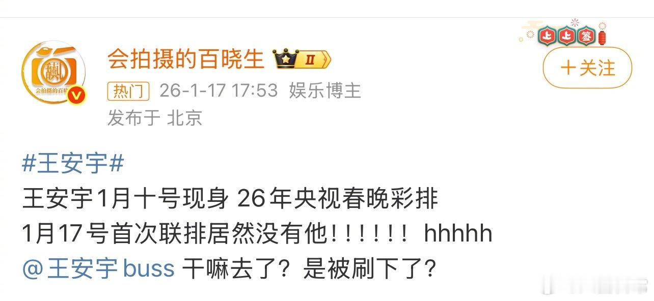 这个狗仔是有什么料吗?为啥突然阴阳王安宇王安宇没参加春晚联排王安宇杂志