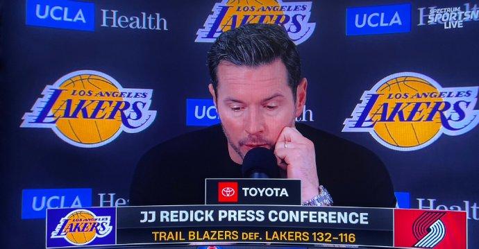 雷迪克谈湖人两位数分差失利: “当你以16分分差输球时,遭遇失利的同时感到