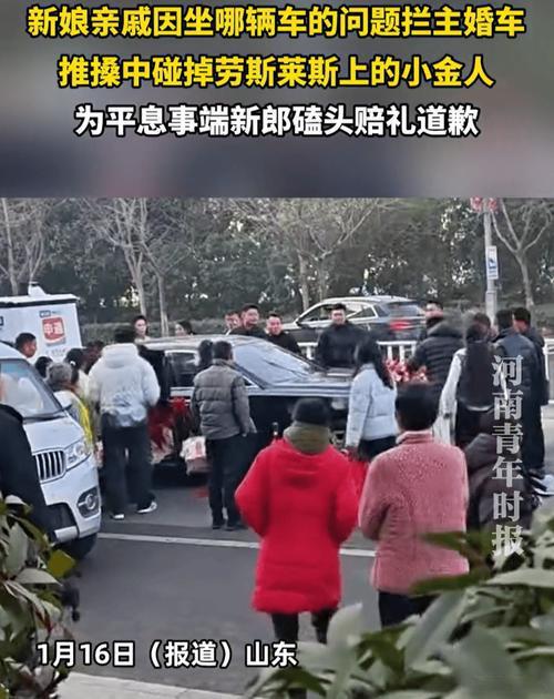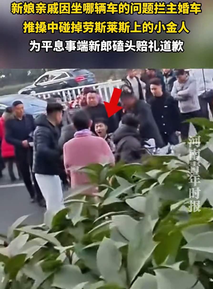 离谱!婚礼因琐事拦婚车,竟把劳斯莱斯小金人碰掉,最后新郎磕头赔礼道歉! 新娘亲戚因坐哪辆车问题拦婚车,结果不知轻重,直接碰掉了劳斯莱斯车头的小金人。要知道这小金人可不是普通车标,劳斯莱斯的欢庆女神定制款,换一个动辄大几十万,之前就有类似事件赔24万的先例! 好好的喜事瞬间变糟心事,车主当场肯定急坏了,最后新郎没办法,只能磕头赔礼道歉,场面又尴尬又无奈。 结婚本是高兴的大事,可因为一些琐事出了意外,不仅扫了结婚的喜庆,还得担赔偿责任,这教训太深刻了!