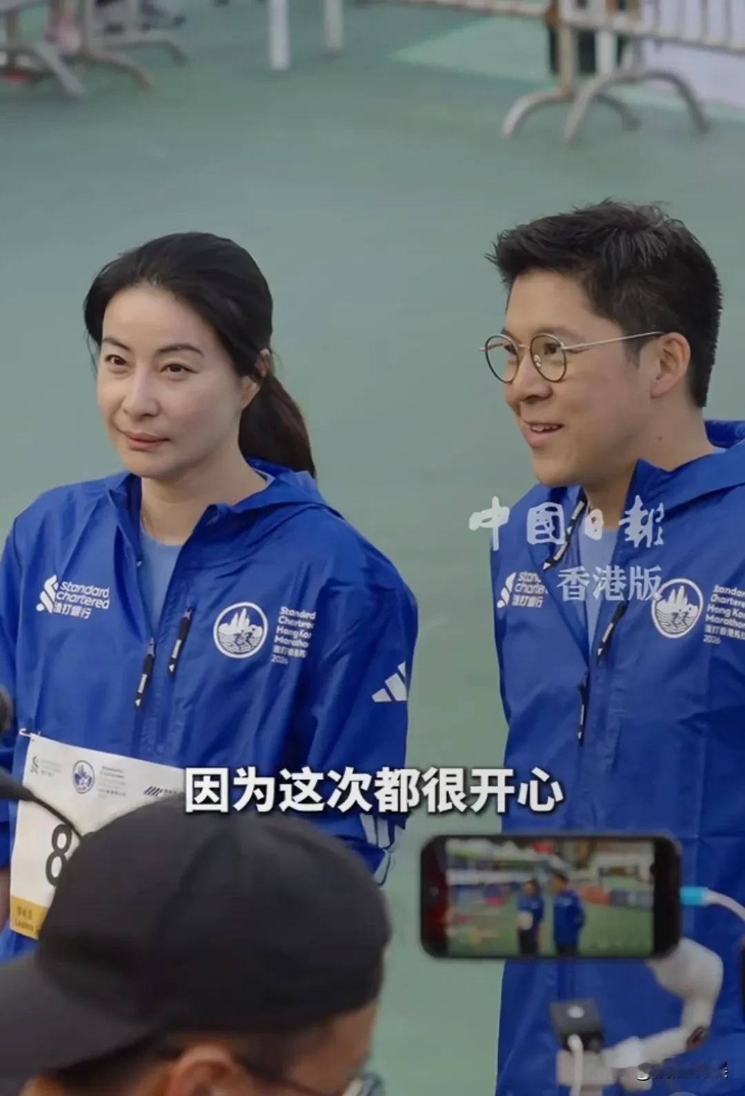 郭晶晶、霍启刚这对恩爱夫妻现身2026香港渣打马拉松,夫妻俩笑容可掬,爽朗大方。 俩人都穿着蓝色运动服黑色裤子,郭晶晶扎着低马尾,身材紧致苗条,看着血气充足、状态非常好。 这几年郭晶晶的状态回春不少。 霍启刚自从为了改变不好的睡眠而跑步后,这身材,看着比2024年他参加渣打马拉松瘦了不少,肚子小了,身材结实了,腿也迈得动了。 郭晶晶真的是霍启刚的贤助理啊,各种赛事和活动,郭晶晶都陪着霍启刚,亲力亲为,为他打气加油,怪不得霍启刚事业步步高升!