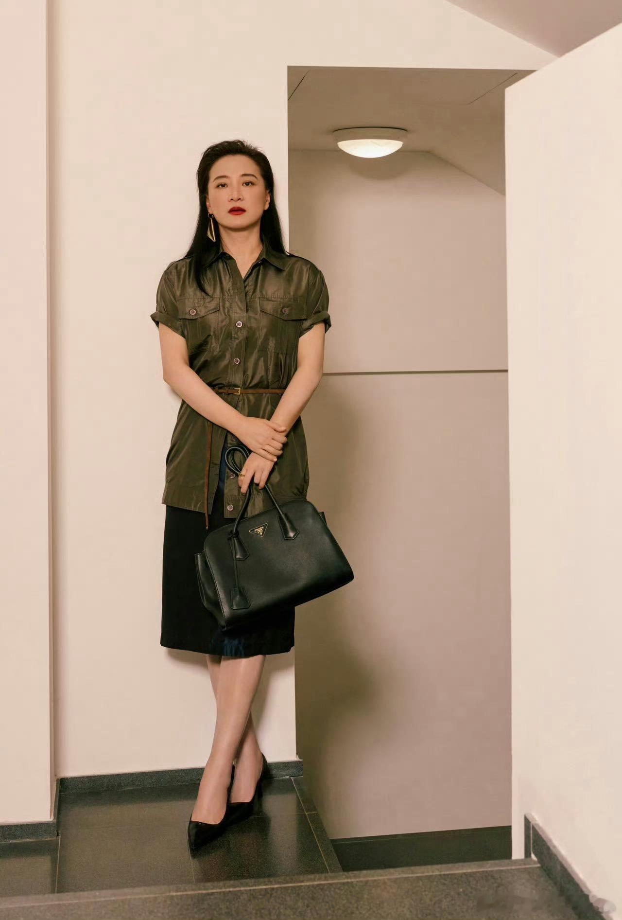 贾玲率先发布一组Prada大秀 看秀造型,Prada标志的三角耳饰是亮点,姐有自己的风格男装周米兰男装周