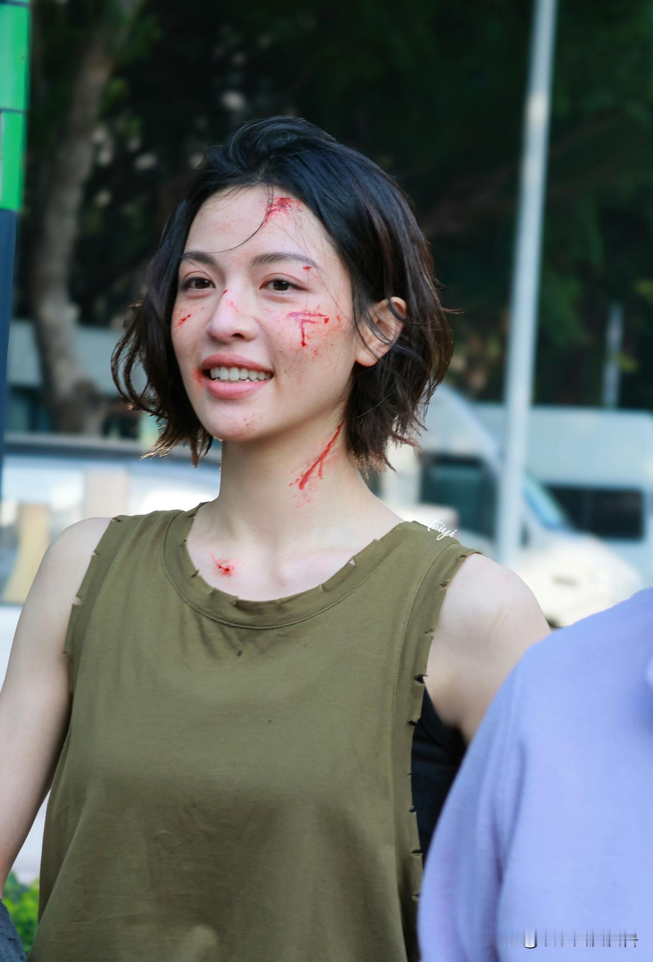 钟楚曦,转型了! 《明日乐园》钟楚曦路透,真的颠覆了她以往的造型,她饰演末日战士“林三酒”,紧实肌肉线条,破碎战损妆,与钟楚曦冷冽气质很相配。网友评价其为“最适合末日女战士的人选”。 钟楚曦这一次在形象上有了大突破,不仅剪了短发,而且还亮出了肌肉,这次是要转型呀,不再是演明艳大美女形象,而是演演未来战士了,不过有一点,这个直角肩有点出戏了。